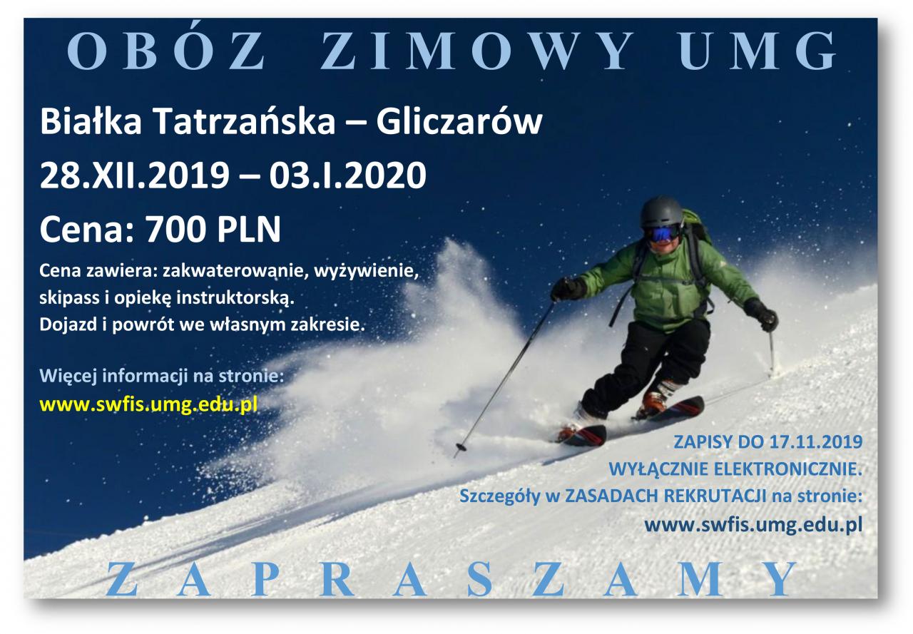 Obóz zimowy 2019 organizowany jest przez Studium Wychowania Fizycznego i Sportu Uniwersytetu Morskiego w Gdyni. Koszt udziału w obozie wynosi: 700 zł. Cena zawiera: zakwaterowanie, wyżywienie, skipass i opiekę instruktorską. Dojazd i powrót we własnym zakresie.