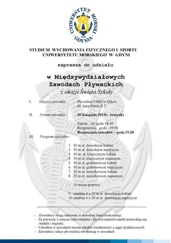 - Udziałem w zawodach można odrobić nieobecności z zajęć dydaktycznych.
