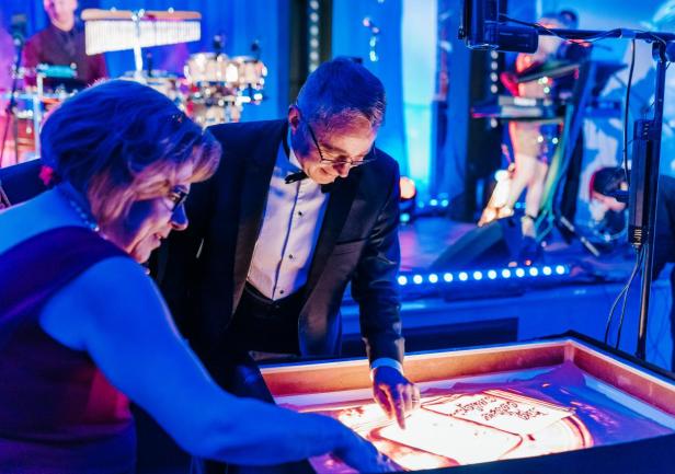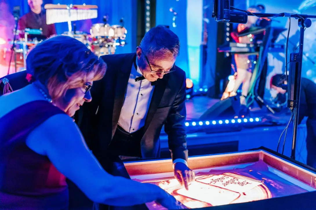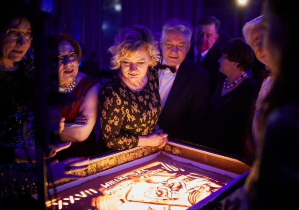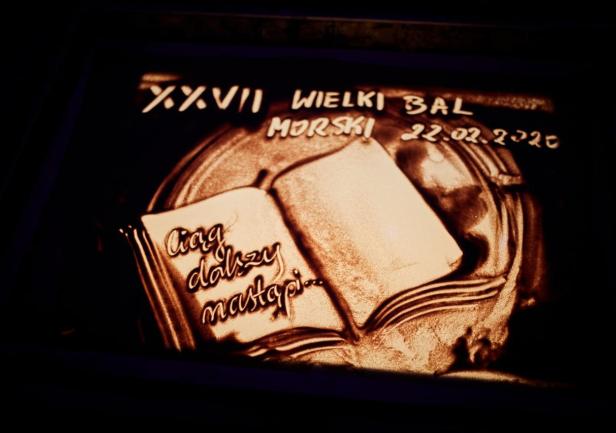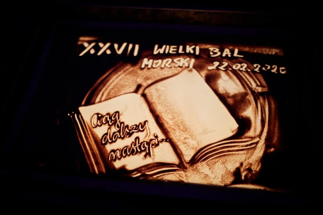 Największe zainteresowanie i podziw wśród gości wzbudziła historia Uniwersytetu Morskiego w Gdyni namalowana piaskiem przez gwiazdę wieczoru Panią Magdalenę Suszek – Bąk.