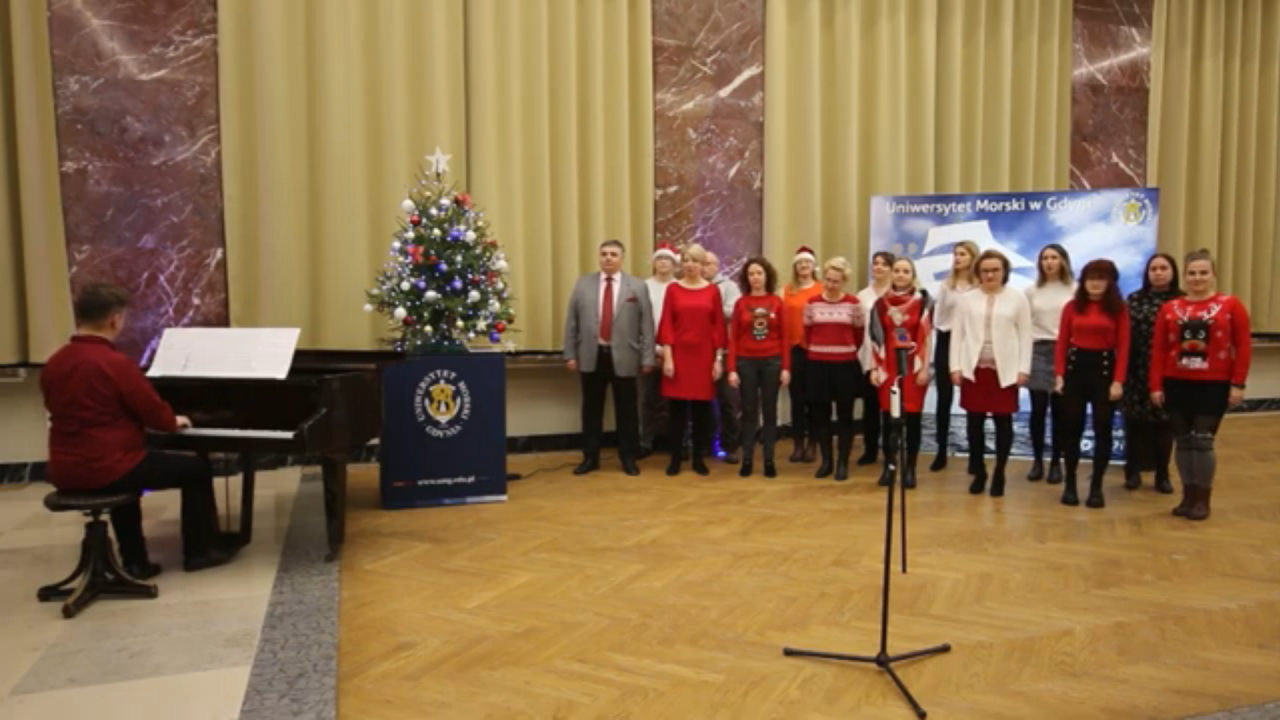 Z okazji zbliżających się Świąt Bożego Narodzenia JM Rektor prof. dr hab. inż. kpt.ż.w. Adam Weintrit oraz Akademicki Chór Uniwersytetu Morskiego w Gdyni pod dyrekcją Karola Hilli przygotowali niespodziankę dla całej społeczności akademickiej Naszego Uniwersytetu.