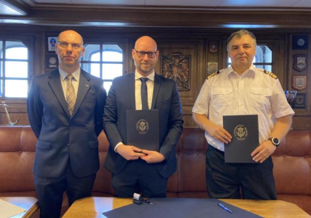 W dniu 15 lipca br. na pokładzie fregaty szkolnej Dar Młodzieży Rektor Uniwersytetu Morskiego w Gdyni prof. dr hab. inż. kpt. ż.w. Adam Weintrit, Prezes MEWO SA Paweł Gajewski oraz Wiceprezes MEWO SA Michał Głuszczyński podpisali porozumienie o współpracy pomiędzy Uniwersytetem, a firmą MEWO SA.