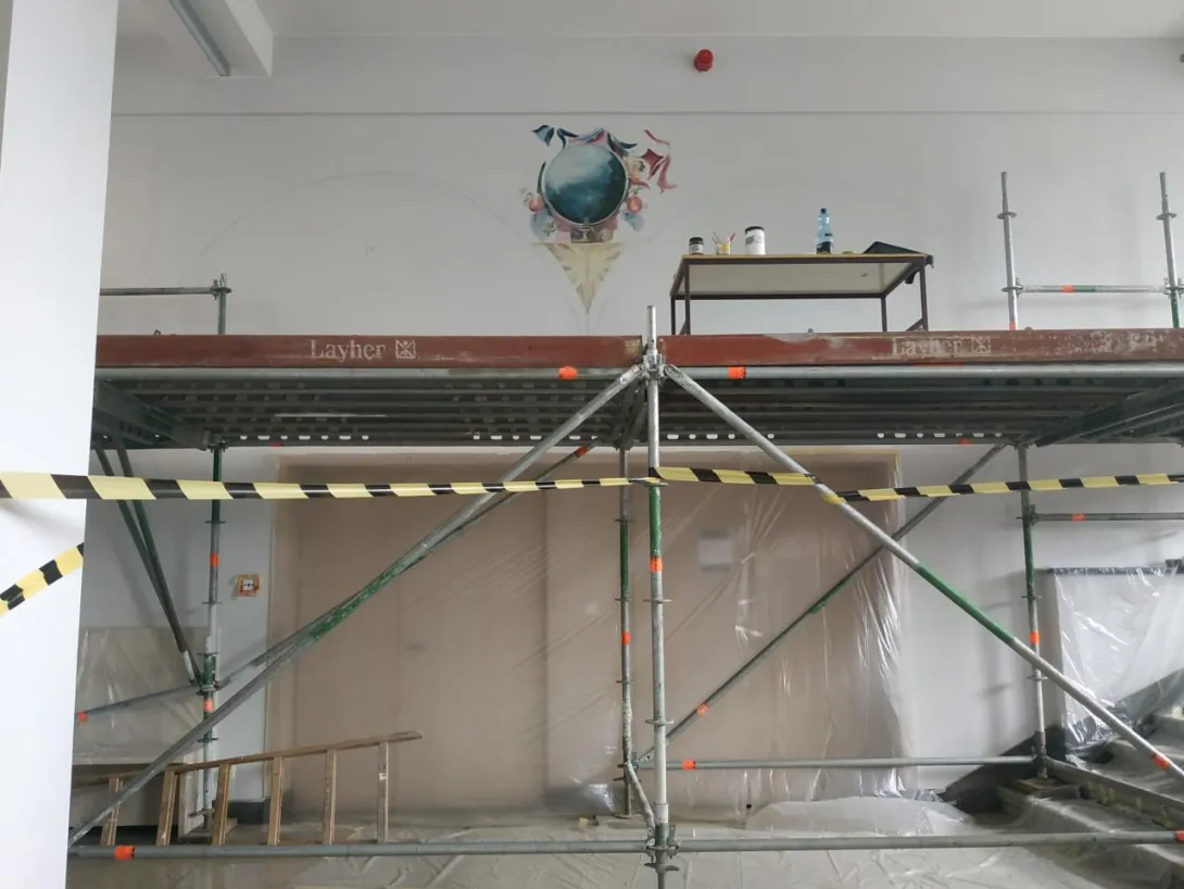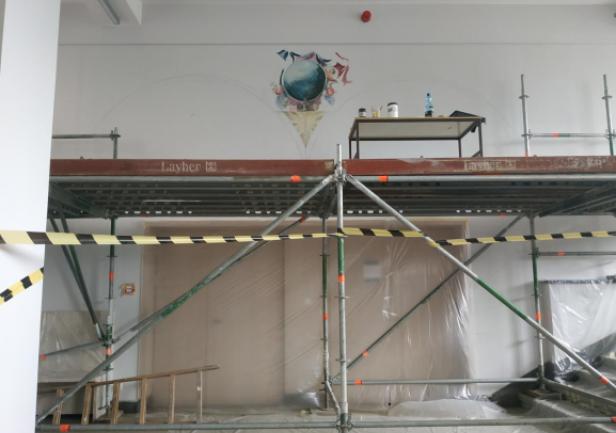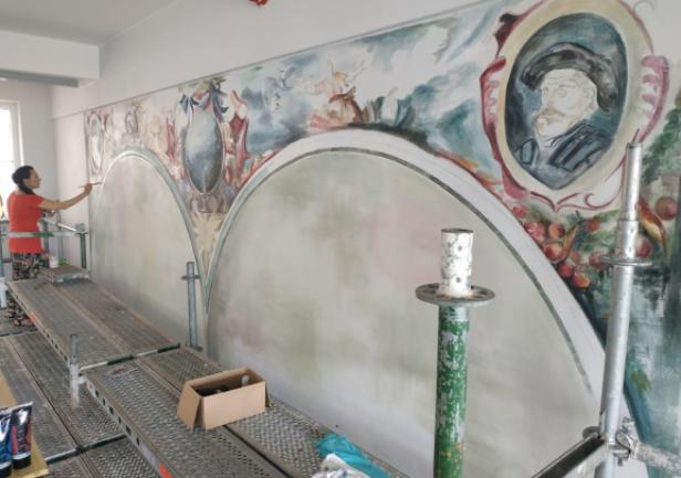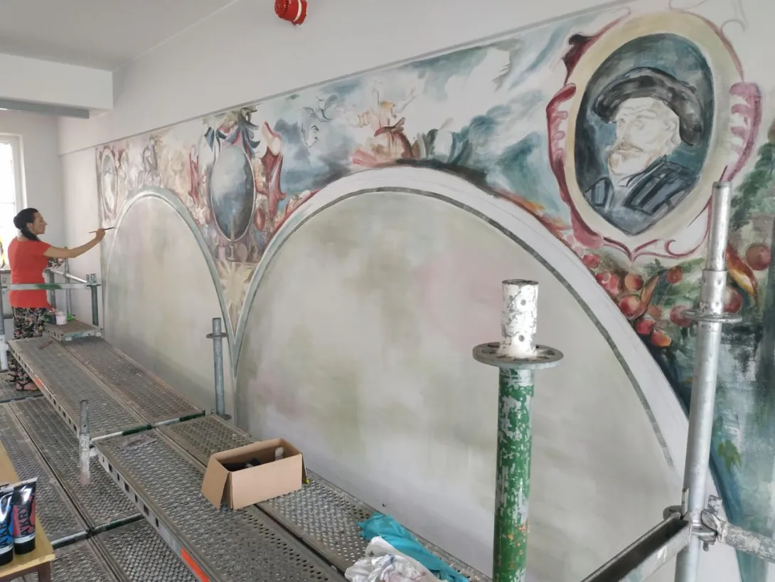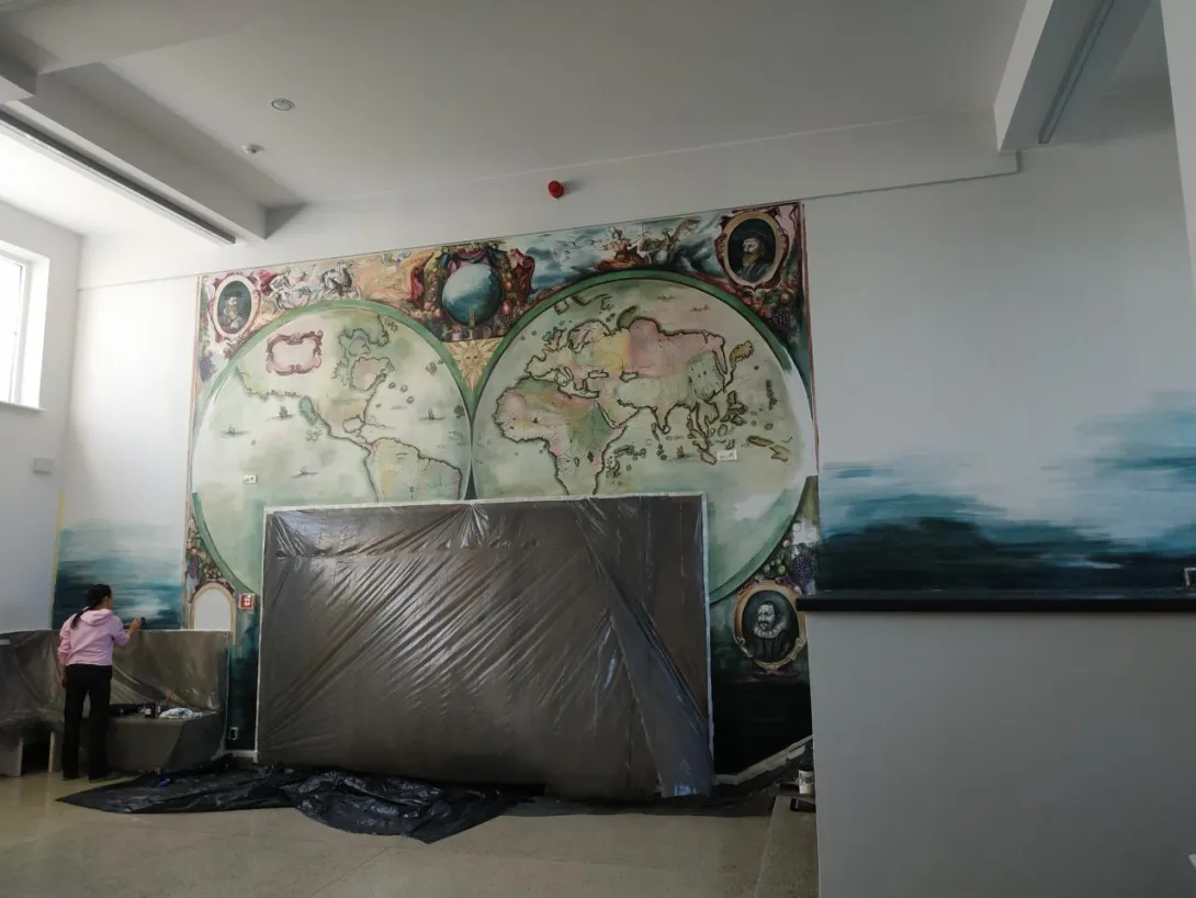 Mural ścienny w budynku Wydziału Nawigacyjnego nawiązuje do stosowanych w XVII wieku rozwiązań malarskich. Joanna Rogowska tak opisuje swoją pracę: - Na mapie przedstawionej przeze mnie możemy zaobserwować różne typy ozdobników i symboli, między innymi są to portrety Gerardusa Mercatora, Klaudiusza Ptolemeusza, Ferdynanda Magellana, Jodocus Hondiusa Starszego. Mapa zawiera także symbole trzech żywiołów w postaci Boga Ognia na rydwanie zaprzęgniętym w dwa ogniste konie, Ziemia po środku symbolizuje wodę, jako pozytywna postać - Bogini Wiatru po prawej. Inne zdobienia to żaglowce, zwierzęta morskie, ozdoby roślinne, owoce, itp.