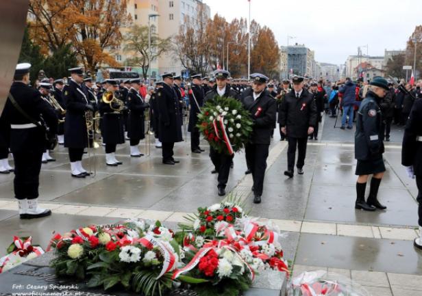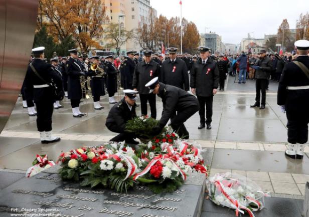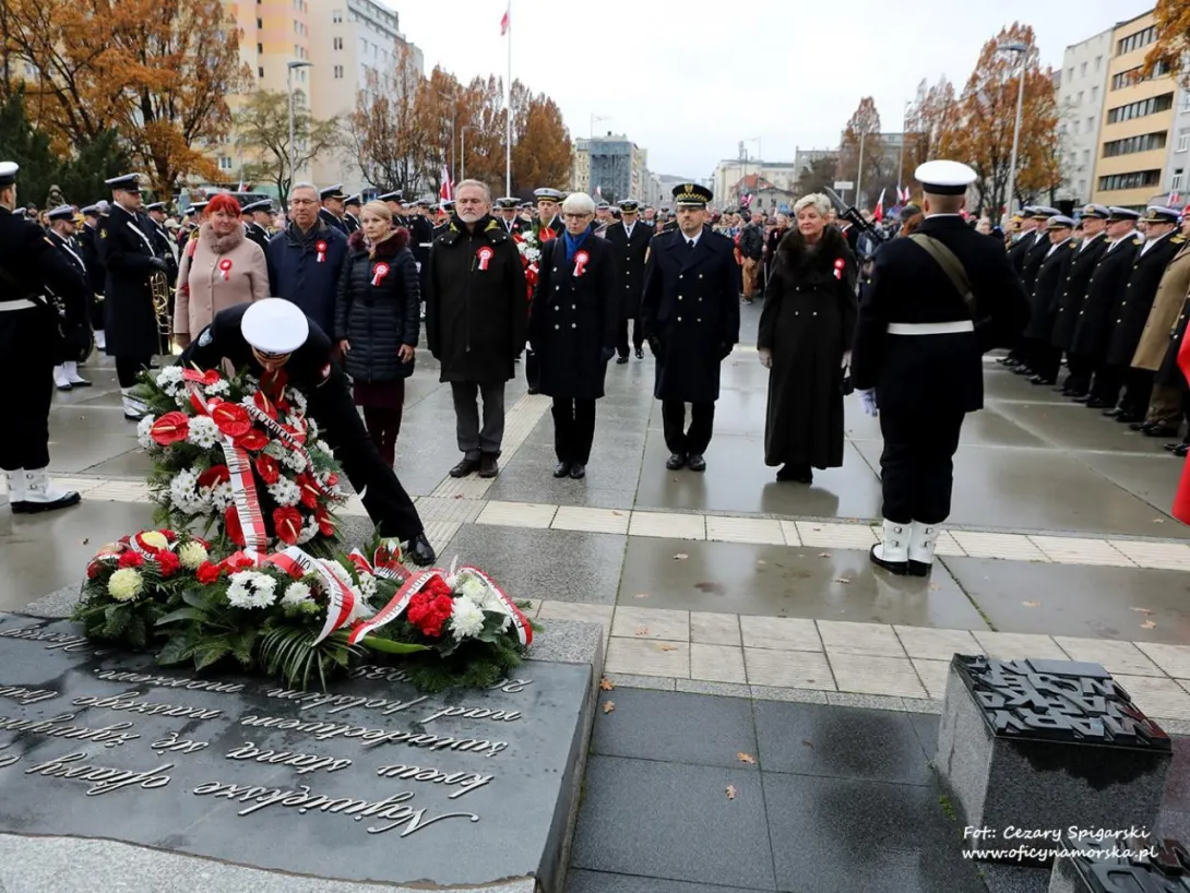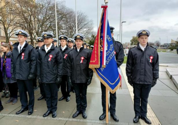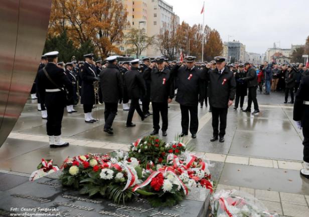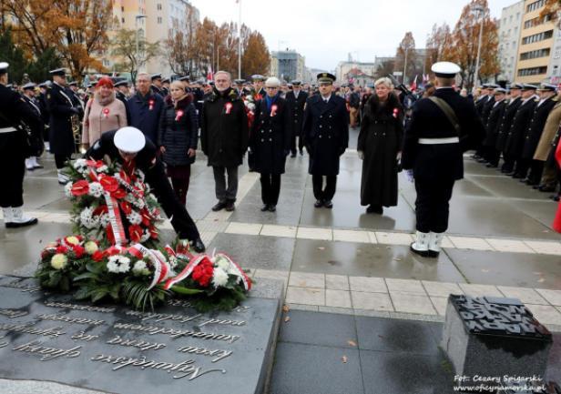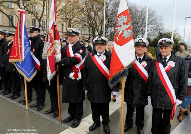 JM Rektor prof. dr hab. inż. kpt. ż.w. Adam Weintrit oraz Prorektorzy: dr hab. Dariusz Barbucha, prof. UMG i dr hab. inż. Mirosław Czechowski, prof. UMG, a także studenci z Kompanii Reprezentacyjnej UMG uczestniczyli w gdyńskich uroczystościach Narodowego Święta Niepodległości.
