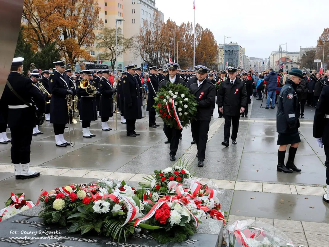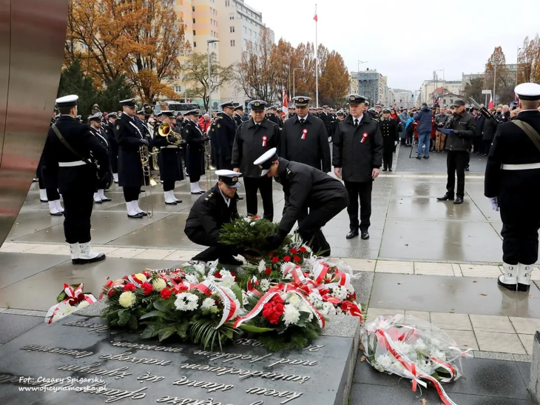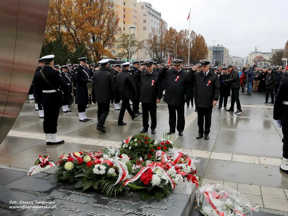 Ostatnim punktem uroczystości było odczytanie Apelu Pamięci zakończonego salwą honorową i złożeniem kwiatów przez delegacje pod pomnikiem Polski Morskiej.