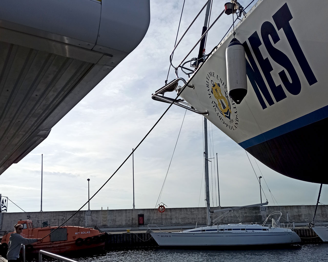 W środę 19 maja odbyło się pierwsze wodowanie jachtu naszej Uczelni w tym sezonie żeglarskim. Po dwuletniej przerwie spowodowanej pandemią, zwodowany został flagowy jacht naszej Uczelni s/y Nest. Obecnie na jachcie trwają prace porządkowe i uzupełniane jest wyposażenie, a już w przyszłym tygodniu przeprowadzone zostaną inspekcje Polskiego Rejestru Statków oraz Urzędu Morskiego.