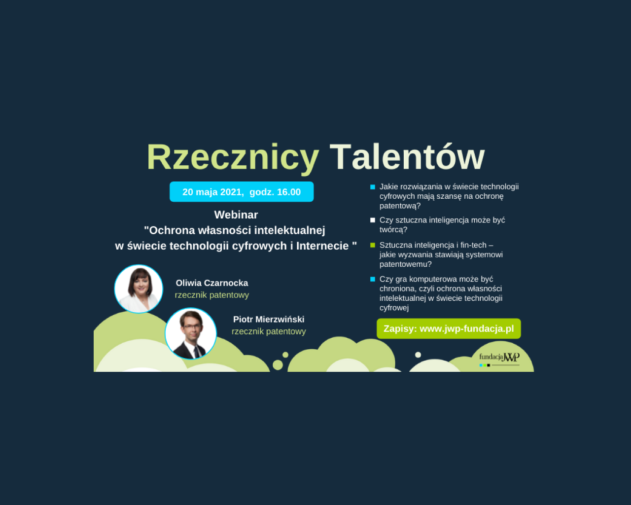 Zgadzam się na wykorzystywanie moich danych osobowych przez kancelarię JWP Rzecznicy Patentowi, Fundację JWP i podmioty powiązane w celach marketingowych.