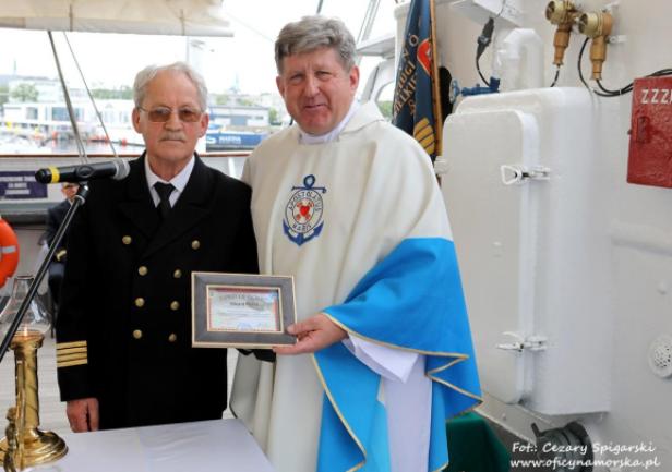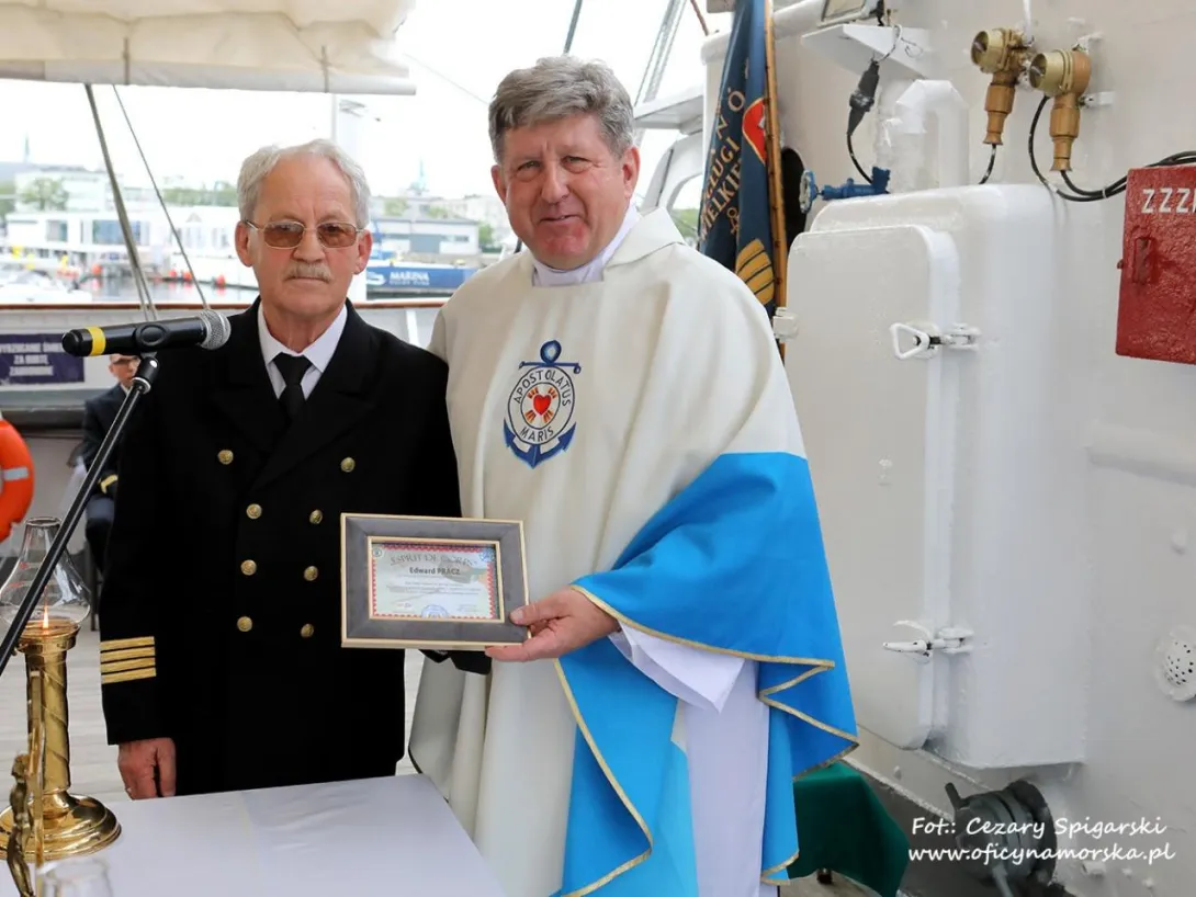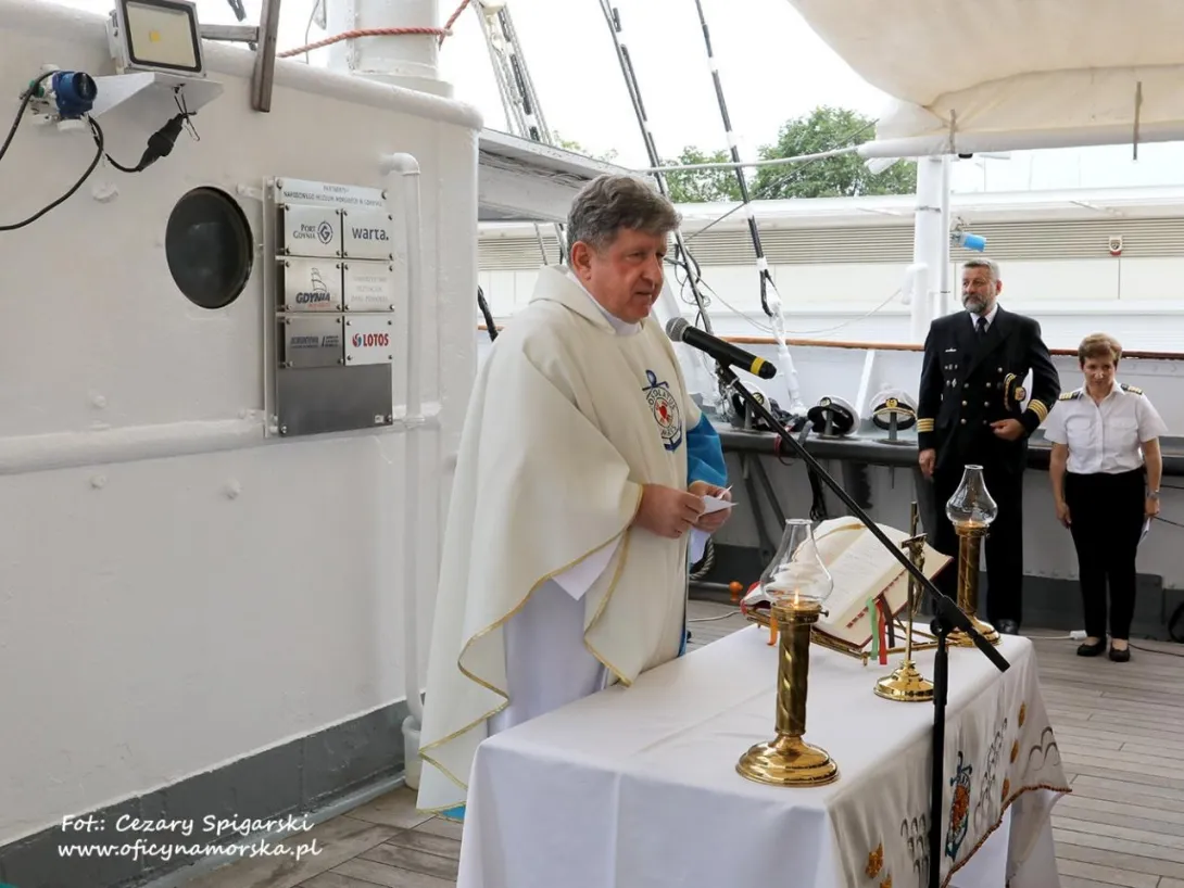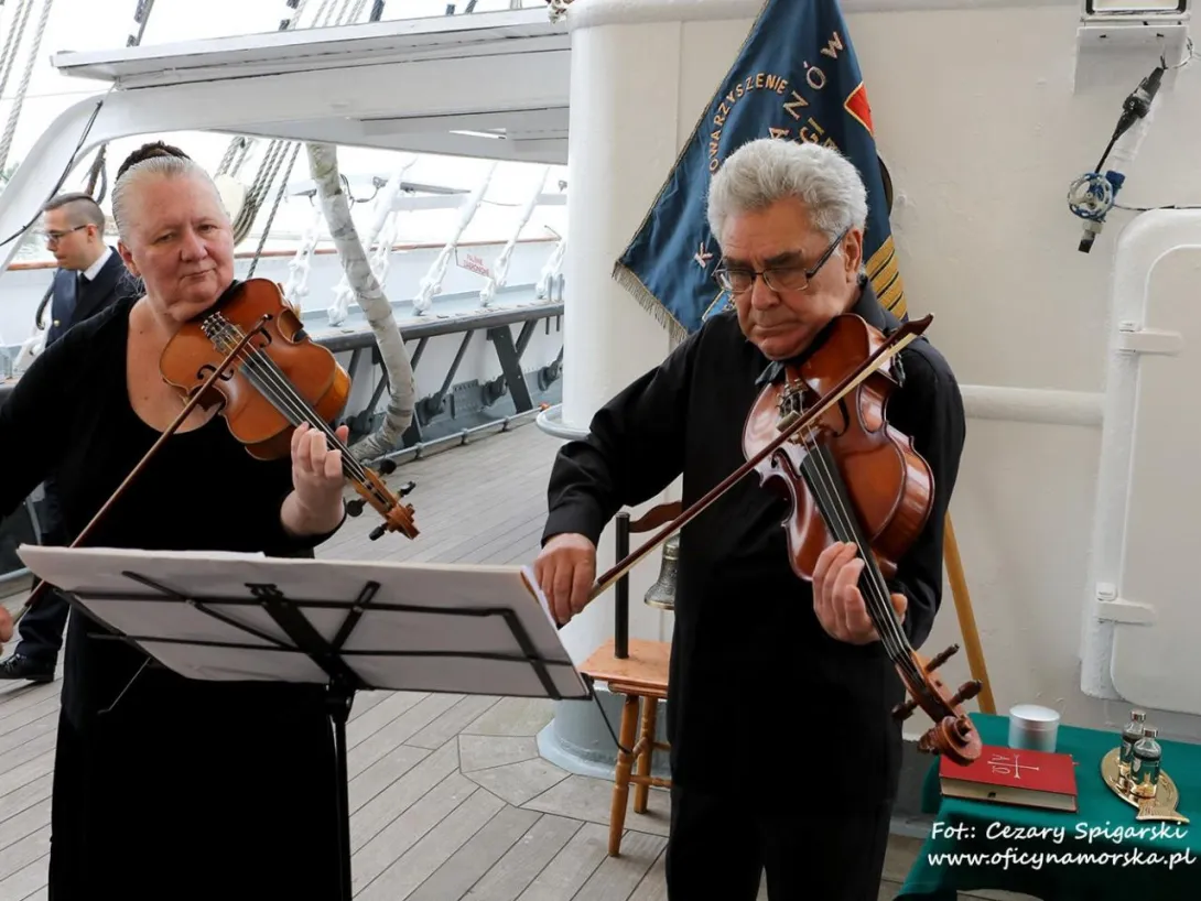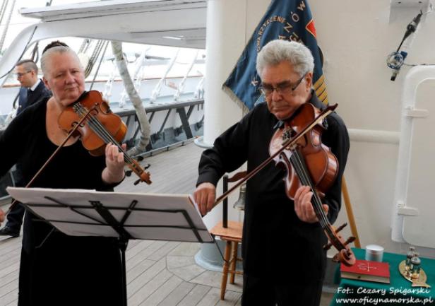 W sobotę 11 czerwca 2022 r. na pokładzie statku-muzeum „Dar Pomorza” odbyły się oficjalne obchody jubileuszu 45-lecia Stowarzyszenia Kapitanów Żeglugi Wielkiej. Uroczystość rozpoczęła się mszą św. pod przewodnictwem ojca Edwarda Pracza, Duszpasterza Ludzi Morza i jednocześnie kapelana Stowarzyszenia, a o oprawę eucharystii zadbał duet ukraińskich muzyków.
