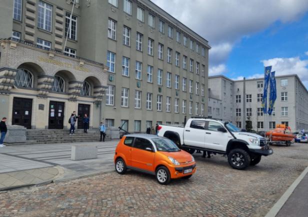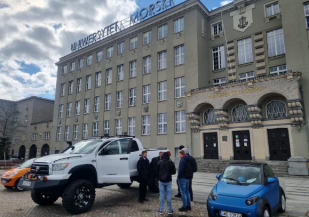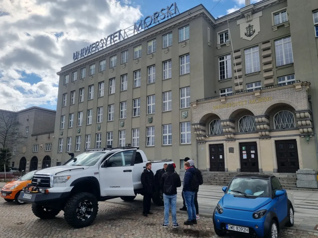 Przed gmachem głównym Uniwersytetu można było podziwiać auta z napędem elektrycznym, RIB’a oraz Toyotę Tundrę, dla której trudne warunki drogowe nie istnieją.