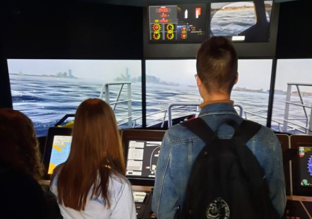 W budynku Wydziału Nawigacyjnego można było z kolei popatrzeć w niebo podczas odbywających się tutaj seansów w Planetarium lub stanąć za sterami statku w symulatorze mostka nawigacyjnego.