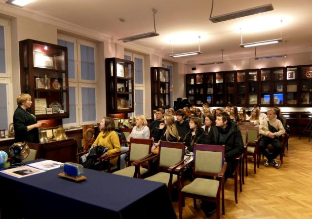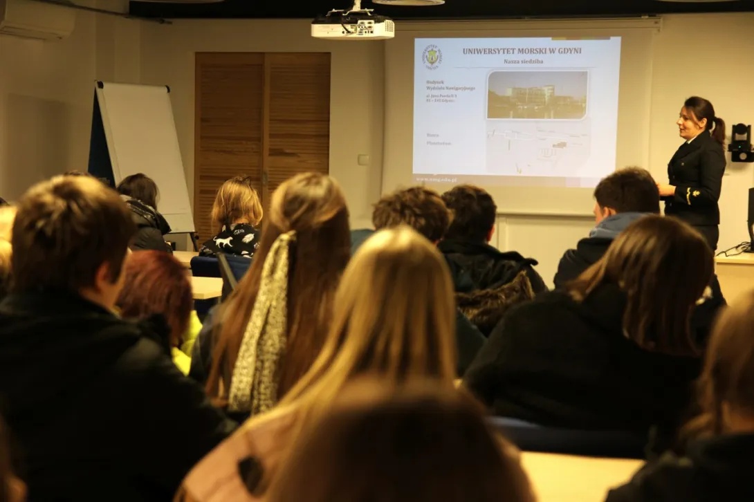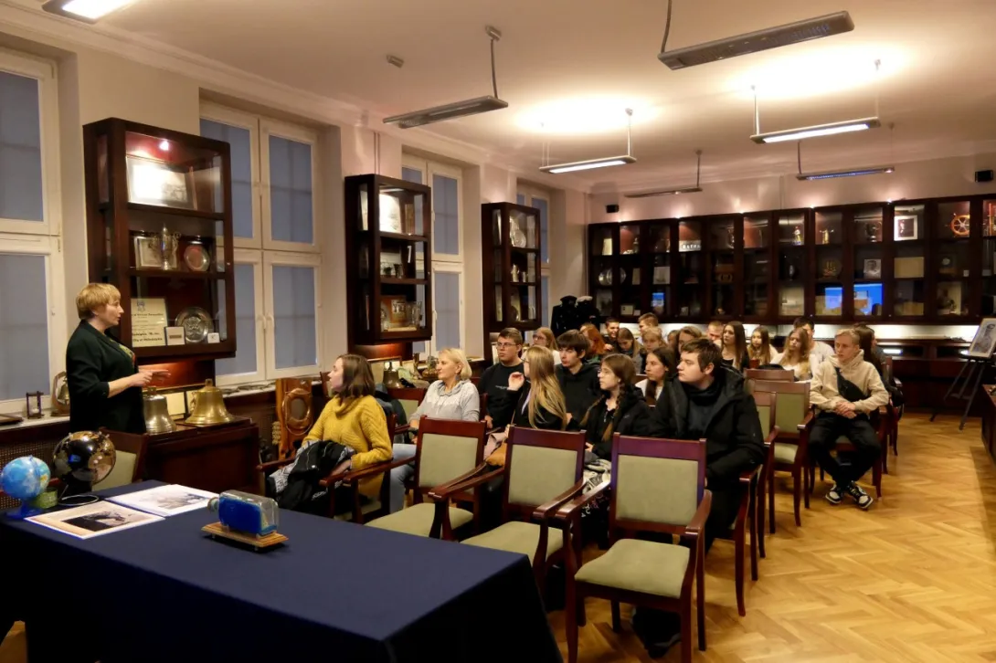 Przyszli maturzyści swoją wizytę w Uniwersytecie Morskim w Gdyni rozpoczęli od zwiedzania Sali Tradycji, w której poznali bogatą historię naszej Uczelni.