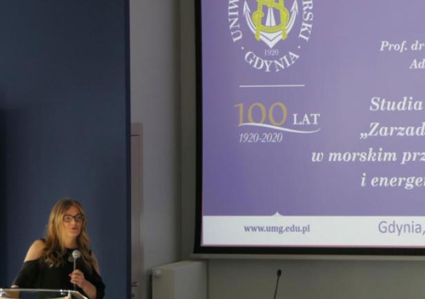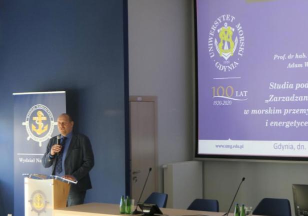 Słuchaczy przywitali: dziekan Wydziału Nawigacyjnego dr hab. inż. Tomasz Neumann prof. UMG oraz kierownik studiów dr hab. Agnieszka Blokus-Dziula prof. UMG. Swoje wystąpienia wygłosili również JM Rektor UMG prof. dr hab. inż. kpt. ż.w. Adam Weintrit oraz Prezes Zarządu PGE Baltica Dariusz Lociński.
