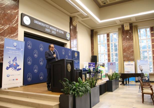 W 102. rocznicę Zaślubin Polski z Morzem Uniwersytet Morski w Gdyni stał się gospodarzem seminarium, które zgromadziło znamienitych przedstawicieli branży morskiej. Gośćmi wydarzenia byli przedstawiciele Ministerstwa Klimatu i Środowiska oraz Infrastruktury: Marek Gróbarczyk Sekretarz Stanu w Ministerstwie Infrastruktury, Marcin Białek Dyrektor Departamentu Spraw Międzynarodowych w Ministerstwie Klimatu i Środowiska. W dyskusjach panelowych uczestniczyli przedstawiciele armatorów, stoczni, biur projektowych i producentów wyposażenia statków.