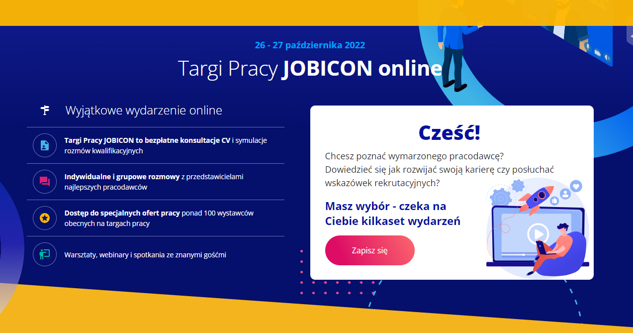 Biuro Karier Studenckich zachęca studentów i absolwentów do wzięcia udziału w Targach Pracy JOBICON online organizowanych przez pracuj.pl