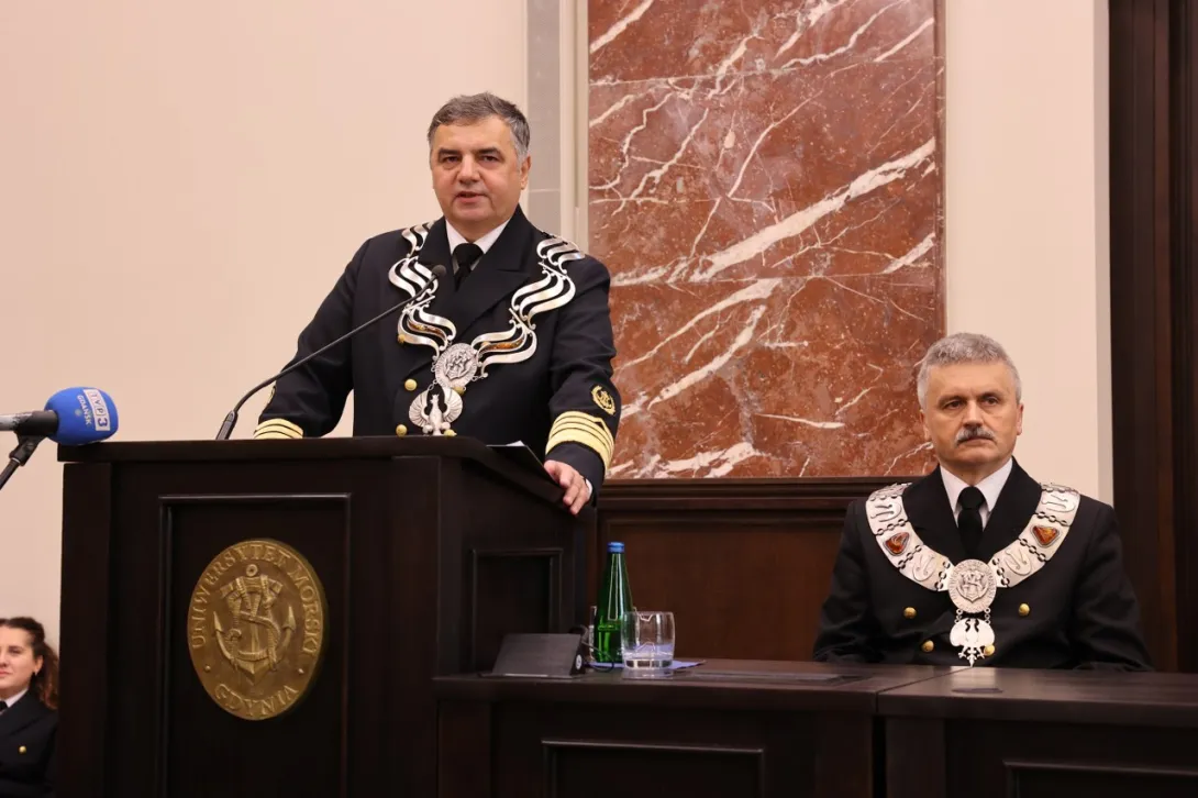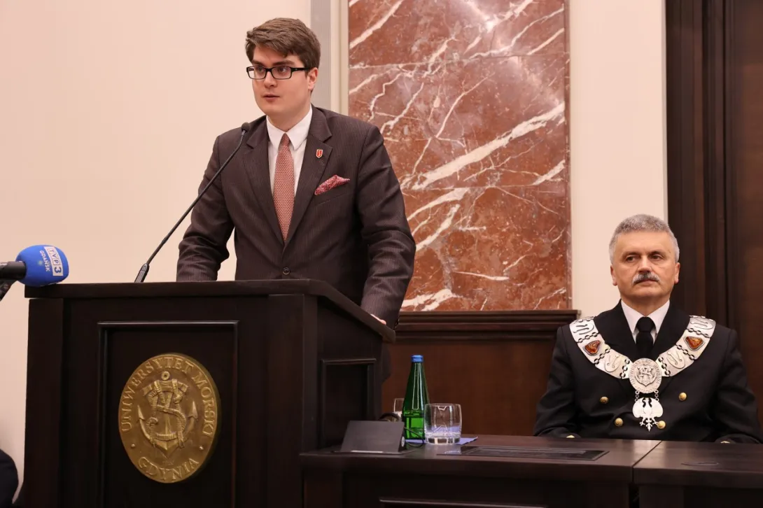 Magnificencjo, dostojni goście, ale przede wszystkim studenci Uniwersytetu Morskiego w Gdyni! Z ogromną radością spotykam się dziś z Państwem w murach Uczelni na kolejnych już grudniowych uroczystościach związanych z obchodami Święta Szkoły. Udział w tym wydarzeniu jest dla mnie jako przedstawiciela Rządu Rzeczpospolitej Polskiej niezwykłym zaszczytem i honorem, bowiem jako Ministerstwo Infrastruktury stawiamy sobie stale za cel starania o dalszy rozwój Uniwersytetu oraz wzmacnianie jego pozycji jako renomowanego ośrodka akademickiego szkolącego przyszłe kadry, które będą wartościowym potencjałem dla polskiej gospodarki morskiej. Przypomnę, że na słynnej Liście Szanghajskiej Uniwersytet Morski w Gdyni stale notuje bardzo wysokie pozycje. Gratuluję!
