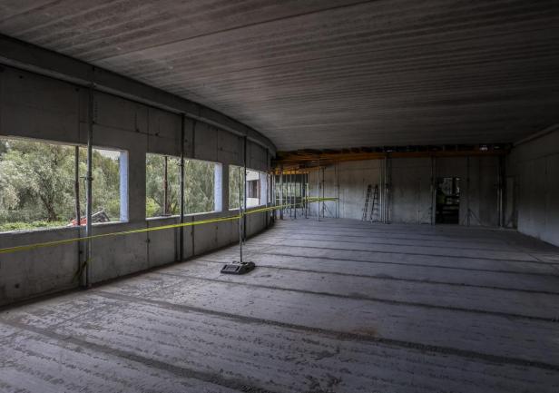 Etap 2: zakończono roboty konstrukcyjne żelbetowe i murowe, trwają prace wykończeniowe: tynkarskie i posadzkarskie na parterze, oraz montaż ścianek działowych G-K na piętrze. Zakończono montaż instalacji elektrycznej podtynkowej i koryt elektrycznych.