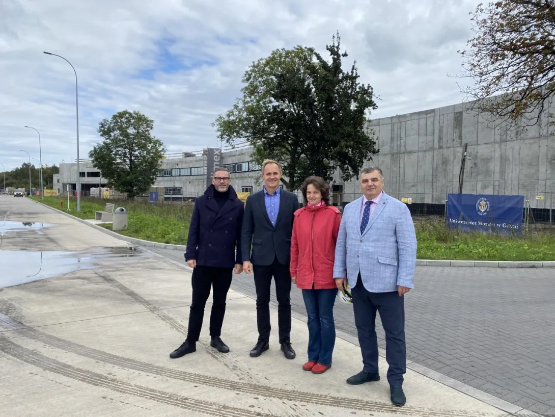 Spotkanie było okazją do zwiedzenia budynku Centrum oraz do zapoznania się z postępami prac. W wizycie uczestniczyli JM Rektor UMG prof. dr hab. inż. kpt. ż.w. Adam Weintrit oraz Kanclerz UMG mgr Filip Malata, którzy omówili zarówno warunki realizacji przedsięwzięcia, jak i harmonogram dalszych działań.