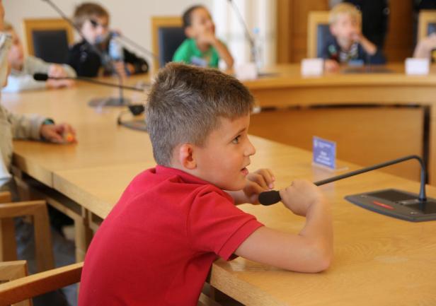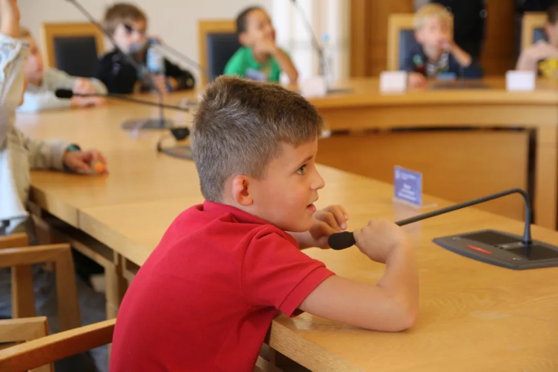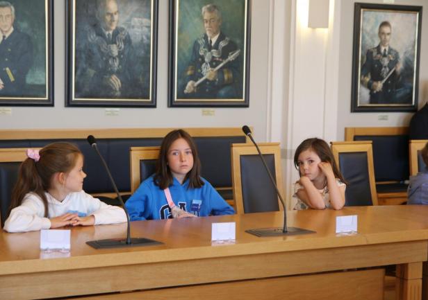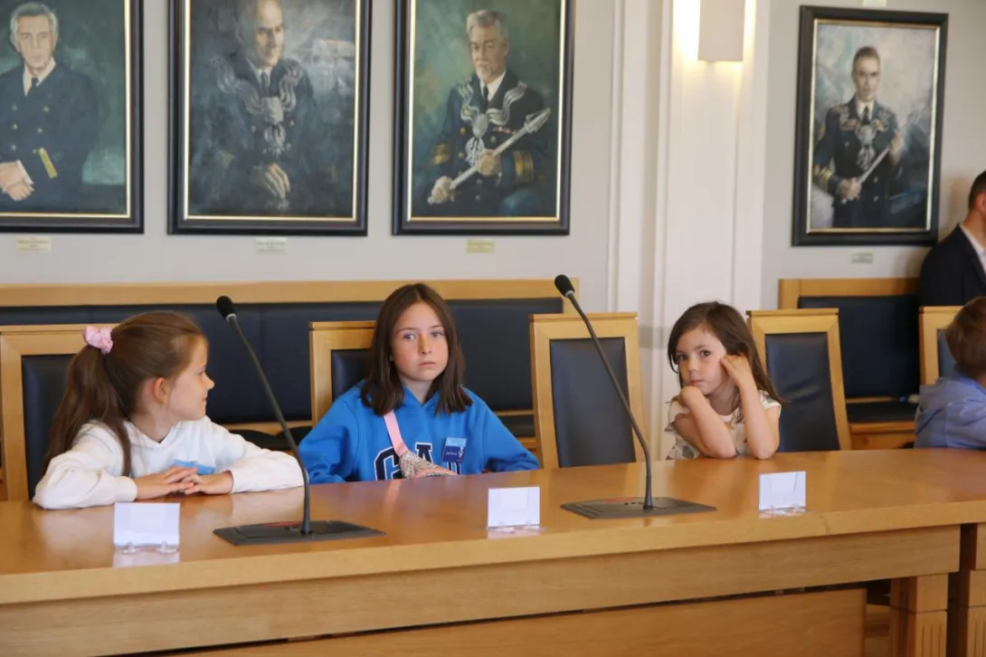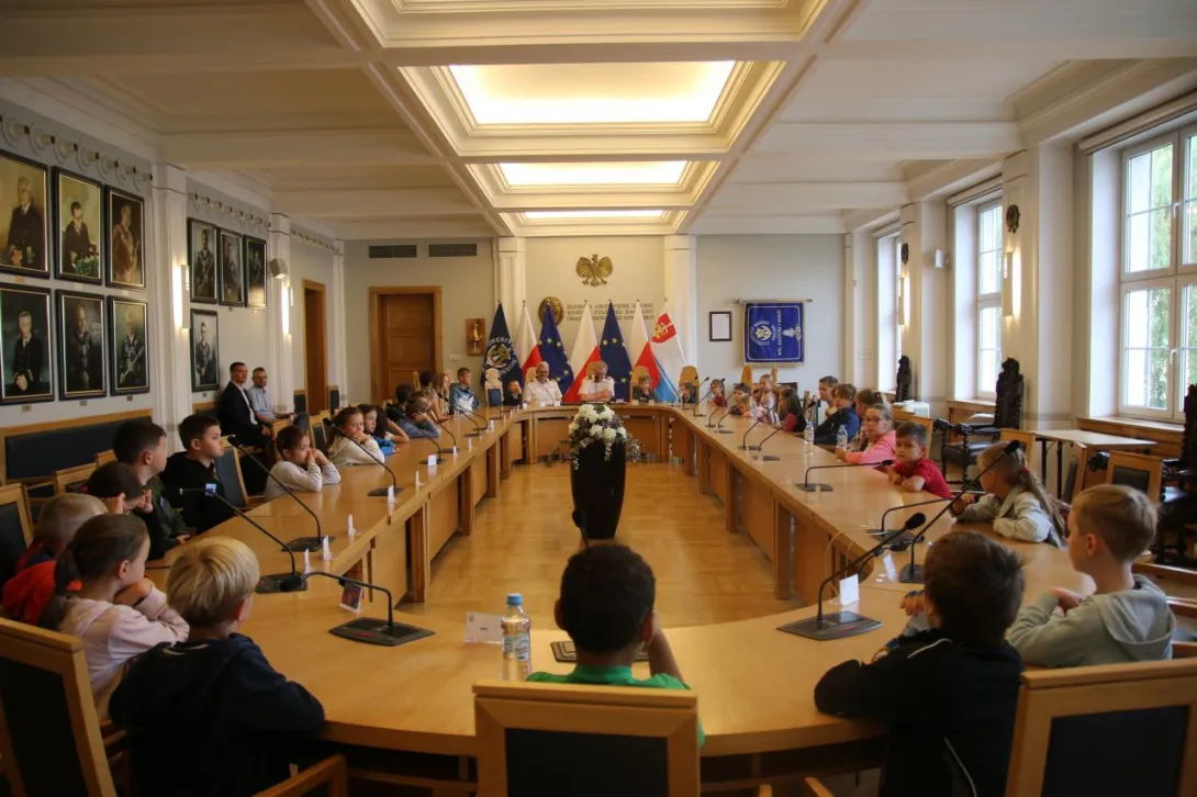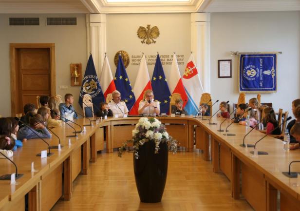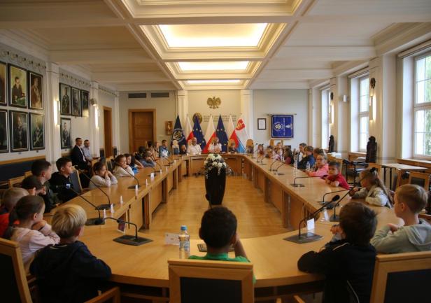 Po spotkaniu organizacyjnym i pożegnaniu z rodzicami uczestnicy Dnia Małego Studenta skierowali się wraz z opiekunami do Sali Senatu na spotkanie z władzami Uczelni. Dzieci zostały przywitane przez dr. hab. Dariusza Barbuchę, prof. UMG – Prorektora ds. nauki i dr. hab. Sambora Guze, prof. UMG – Prorektora ds. kształcenia. Spotkanie rozpoczęło się od uderzenia w dzwon, zgodnie z obowiązującą w naszej Uczelni tradycją rozpoczynania obrad Senatu. W rozmowach z dziećmi nie zabrakło wątków dotyczących działalności Uczelni i jej historii. Na zakończenie wykonano wspólne, pamiątkowe zdjęcie wszystkich uczestników.
