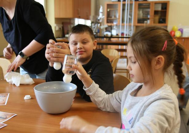 - zajęcia sensoryczne i pieczenie bułeczek,