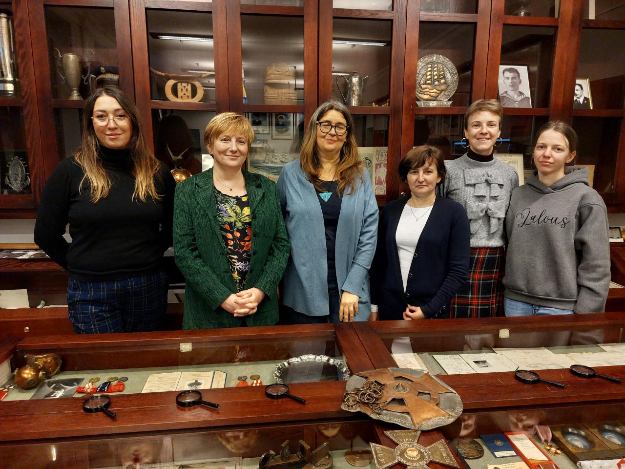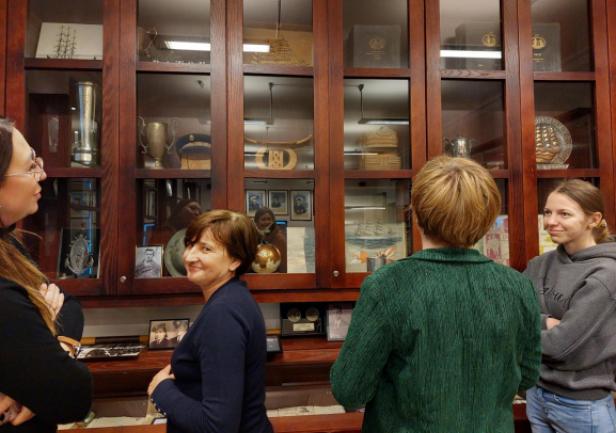 Salę Tradycji odwiedziły 5 grudnia 2023 r. panie przewodniczki i kustosz z „Daru Pomorza” – Narodowego Muzeum Morskiego. Zapoznały się z eksponatami nie tylko z Białej Fregaty, ale i pozostałymi, dotyczącymi historii uczelni i jej absolwentów. Następne spotkanie w Sali Tradycji planowane jest na wiosnę.
