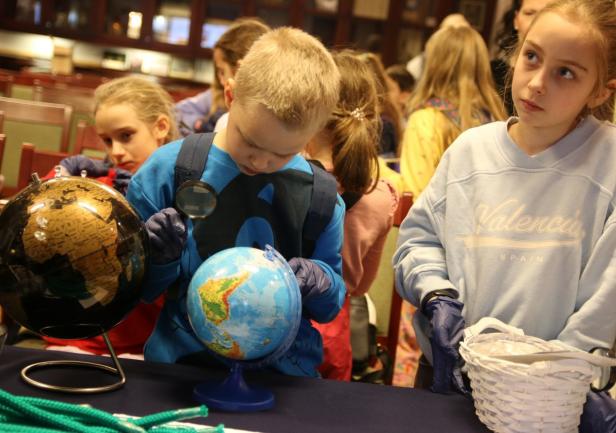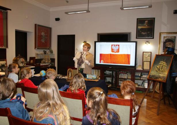 Dzieci z dużym zainteresowaniem oglądały eksponaty, korzystając z lup, wysłuchały również mini wykładu o morskich tradycjach wygłoszonego przez Panią mgr Joannę Stasiak. Pan Michał Kołodziejczak z Biura Promocji i Komunikacji zaprezentował świst trapowy, a także wiązanie wybranych węzłów. Dzieci dowiedziały się między innymi, czym jest konserwacja, oglądając eksponaty przechowywane w Sali Tradycji i porównując te sprzed i po konserwacji.