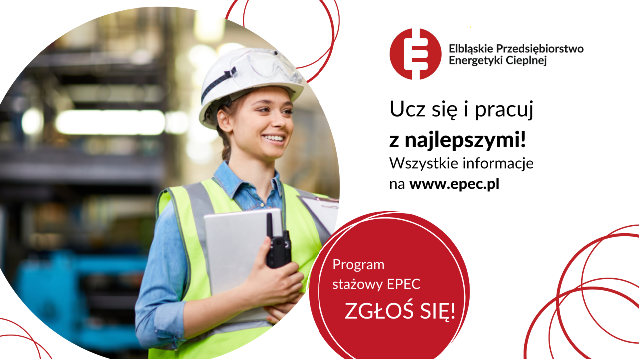 Elbląskie Przedsiębiorstwo Energetyki Cieplnej rozpoczęło trzecią edycję płatnego programu stażowego dla studentów kierunków technicznych. Uczestnicy projektu otrzymają miesięczne stypendium w wysokości 1205 zł brutto. Nabór potrwa do 30 stycznia br.