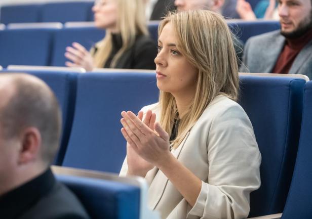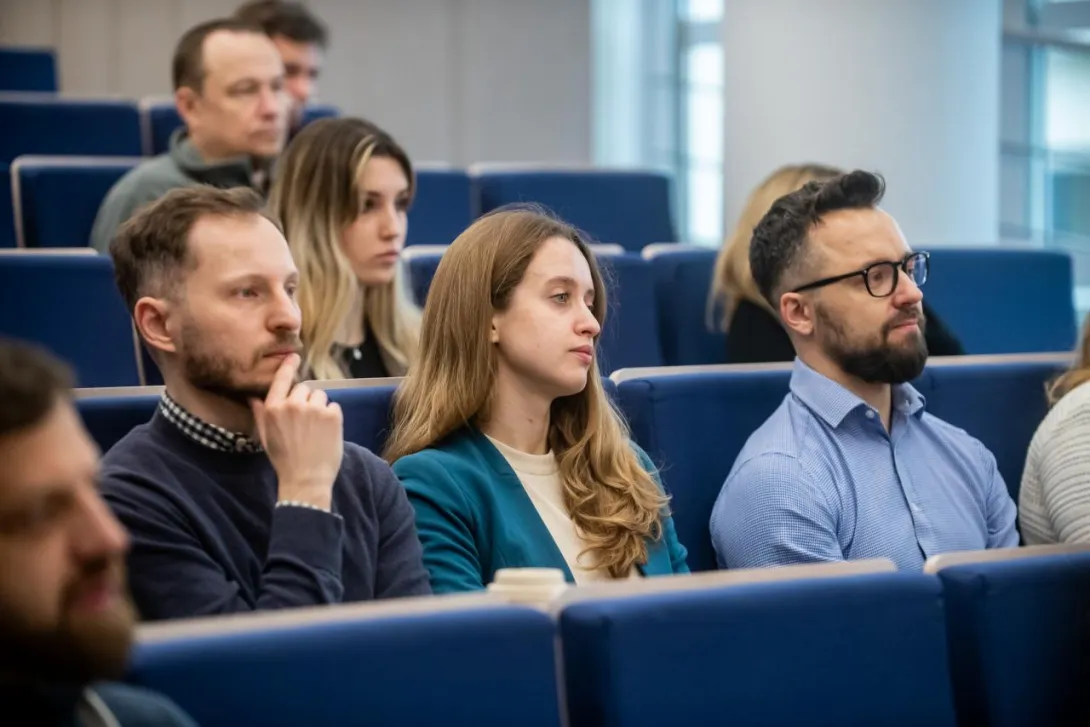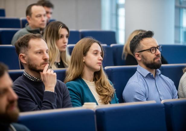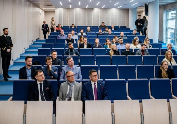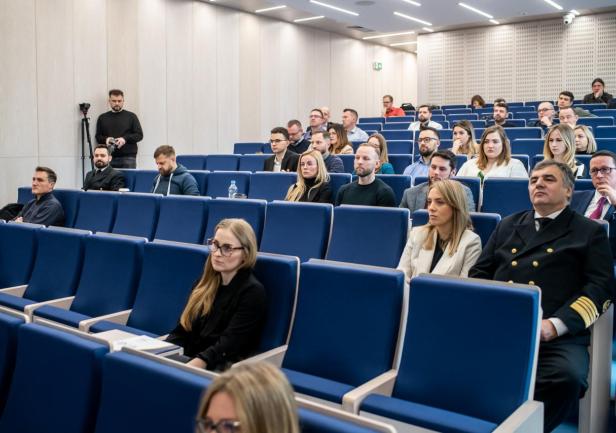 Na koniec oficjalnej części inauguracji, kierownik studiów podyplomowych Agnieszka Blokus-Dziula przedstawiła, jakie nowe zagadnienia, w stosunku do programu pierwszej edycji, zostaną przybliżone słuchaczom w tej edycji studiów. Do kadry dydaktycznej studiów dołączyli specjaliści PGE Baltica – Piotr Kubala, Ekspert ds. Geologii oraz Patryk Juszkiewicz, Ekspert ds. Geotechniki, którzy przybliżą słuchaczom drugiej edycji zagadnienia z zakresu prowadzenia prac geologicznych na potrzeby morskiego przemysłu wydobywczego oraz morskiej energetyki wiatrowej. Do grona wykładowców dołączył także Konrad Wróbel, który wśród zagadnień dotyczących zarządzania ryzykiem w branży morskiej energetyki wiatrowej, szczególną uwagę poświęca zarządzaniu ryzkiem w operacjach lotniczych offshore oraz zagadnieniom infrastruktury krytycznej w sektorze energetycznym i tym tematom będą poświęcone prowadzone przez niego wykłady.