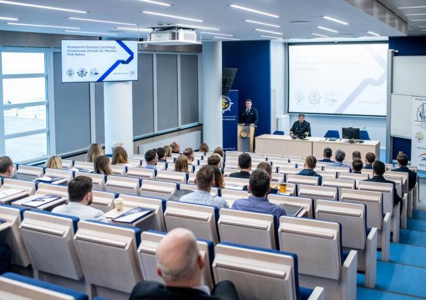 Sławomir Bałdyga, Dyrektor Pionu Nadzorów Przemysłowych w PRS, w swoim wykładzie zwrócił uwagę na potrzebę wypracowania nawyków bezpiecznego zachowania każdego z nas w codziennym życiu i dbania o bezpieczeństwo swoje oraz innych pod hasłem „bezpieczeństwo przede wszystkim”. Podkreślił, że w branży offshore hasło „safety first” nabiera szczególnie ważnego znaczenia i wskazał, jak nieprzestrzeganie zasad bezpieczeństwa może mieć katastrofalne skutki. Dyrektor Pionu Nadzorów Przemysłowych w PRS w czasie wykładu zaprezentował sprzęt ochrony osobistej niezbędny w pracy w sektorze offshore. Sławomir Bałdyga pokreślił, jak istotny jest jego dobór, a pozornie mało istotne elementy i przestrzeganie zasad bezpiecznego zachowania, może uratować życie. W drugiej części wykładu poruszył zagadnienia dotyczące zarządzania ryzykiem projektu, podkreślając, jak ważną rolę pełnią standardy, przepisy i szkolenia, a zwłaszcza w tej branży. Na koniec przedstawił misję, jaką pełnią towarzystwa klasyfikacyjne w tym PRS, z którym jest związany od 2017 roku i którego celem jest pomoc w zapewnieniu bezpieczeństwa ludzi, obiektów pływających i lądowych, ładunków i środowiska naturalnego.