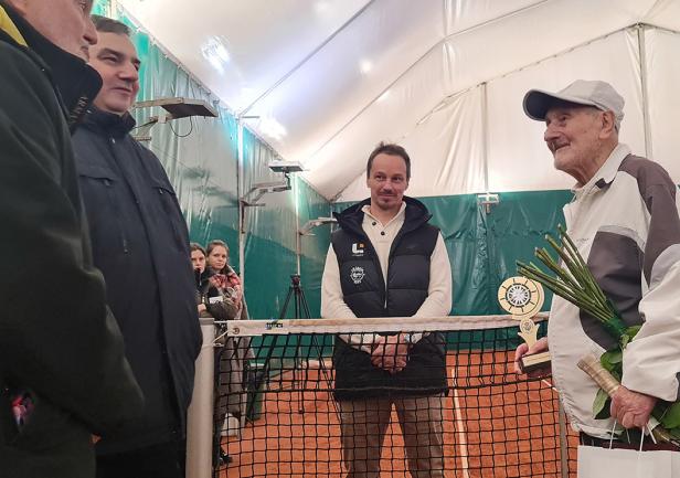 Najstarszy w Polsce i prawdopodobnie na świecie tenisista w piątek, 3 lutego 2023 roku skończył 100 lat. Tadeuszowi Krzyszkowskiemu życzenia na korcie złożyli Rektor Uniwersytetu Morskiego w Gdyni, prof. dr hab. inż. kpt. ż.w. Adam Weintrit, Prezydent Gdyni dr Wojciech Szczurek, Prezes KT Arka Gdynia Radosław Szymanik i dyrektor Centrum Sportu i Rekreacji UMG dr Andrzej Lachowicz.