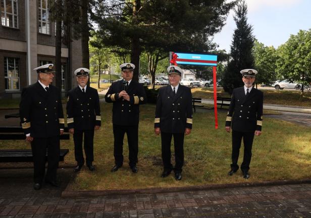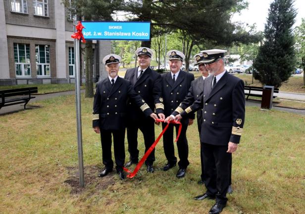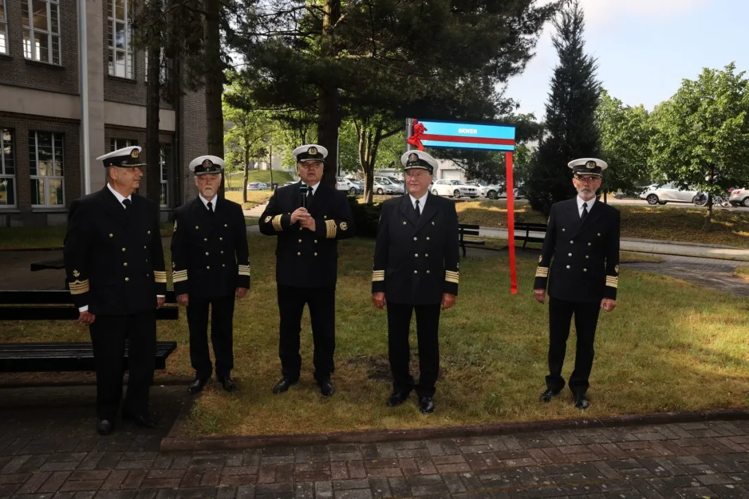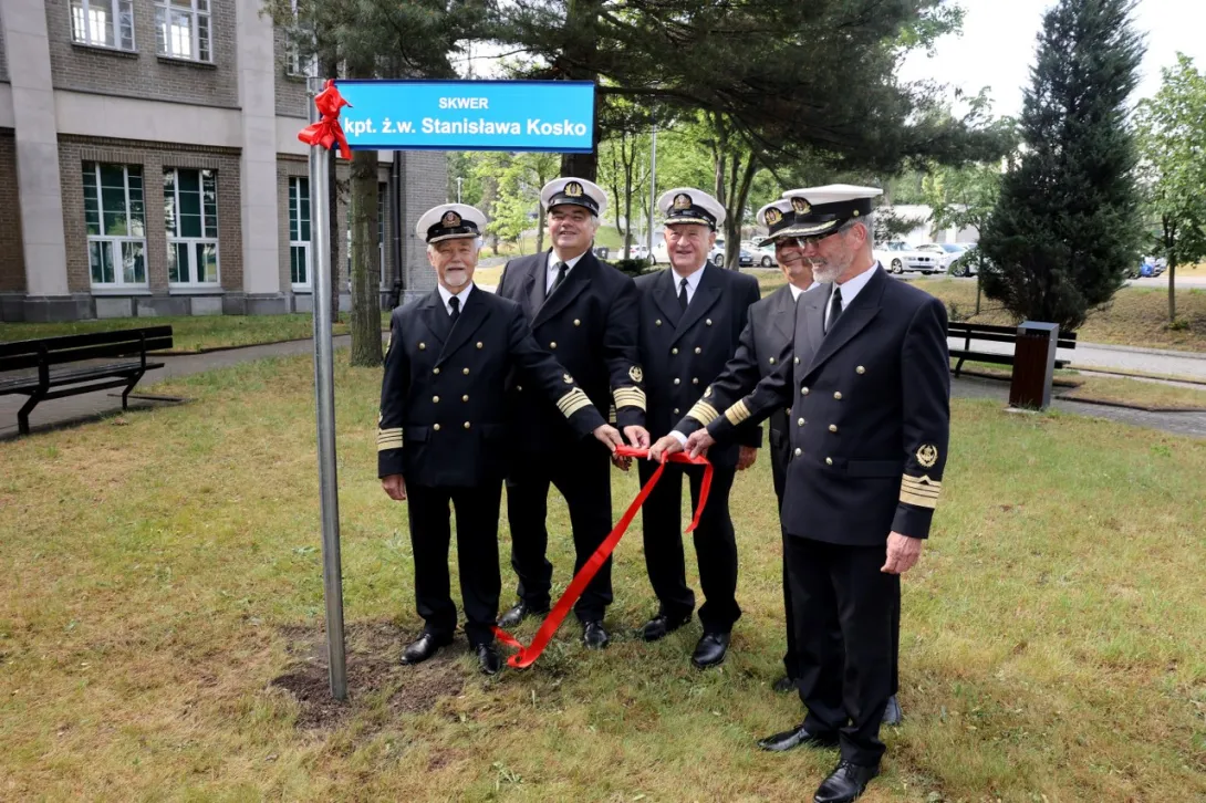 Kolejnym punktem uroczystości było odsłonięcie tablicy i nadania imienia kpt. ż.w. Stanisława Kosko skwerowi znajdującemu się na terenie kampusu Uczelni przy ul. Morskiej.