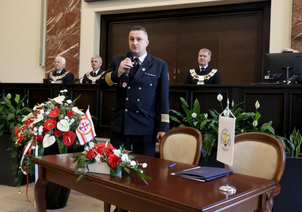 Po podpisaniu listu głos zabrał Dyrektor Sebastian Kluska, wyrażając nadzieję na owocną współpracę z Uczelnią w zakresie ratownictwa morskiego.