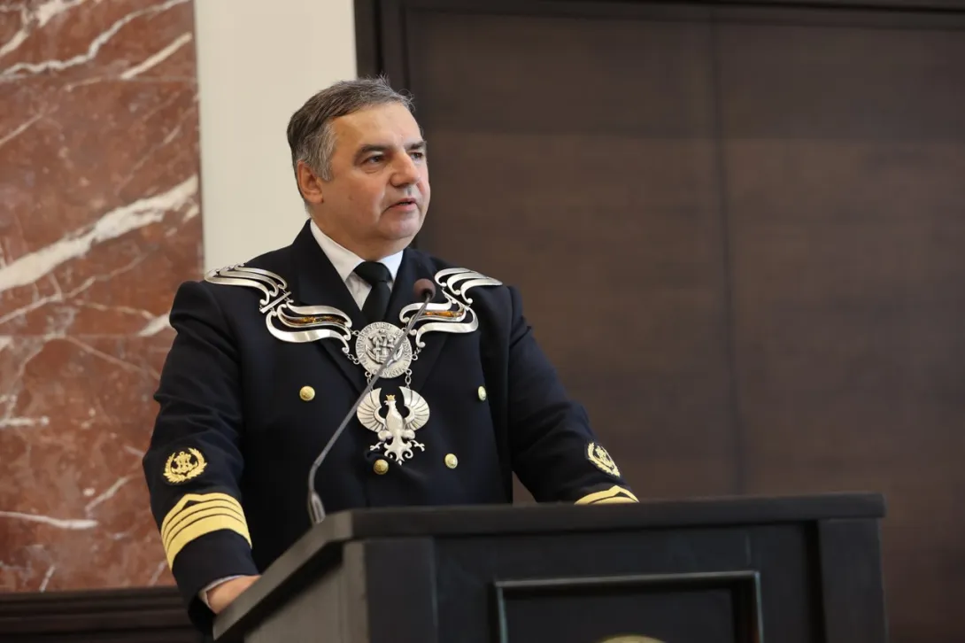 Podczas uroczystości okolicznościowe przemówienie wygłosił JM Rektor Uniwersytetu Morskiego w Gdyni prof. dr hab. inż. kpt. ż.w. Adam Weintrit.