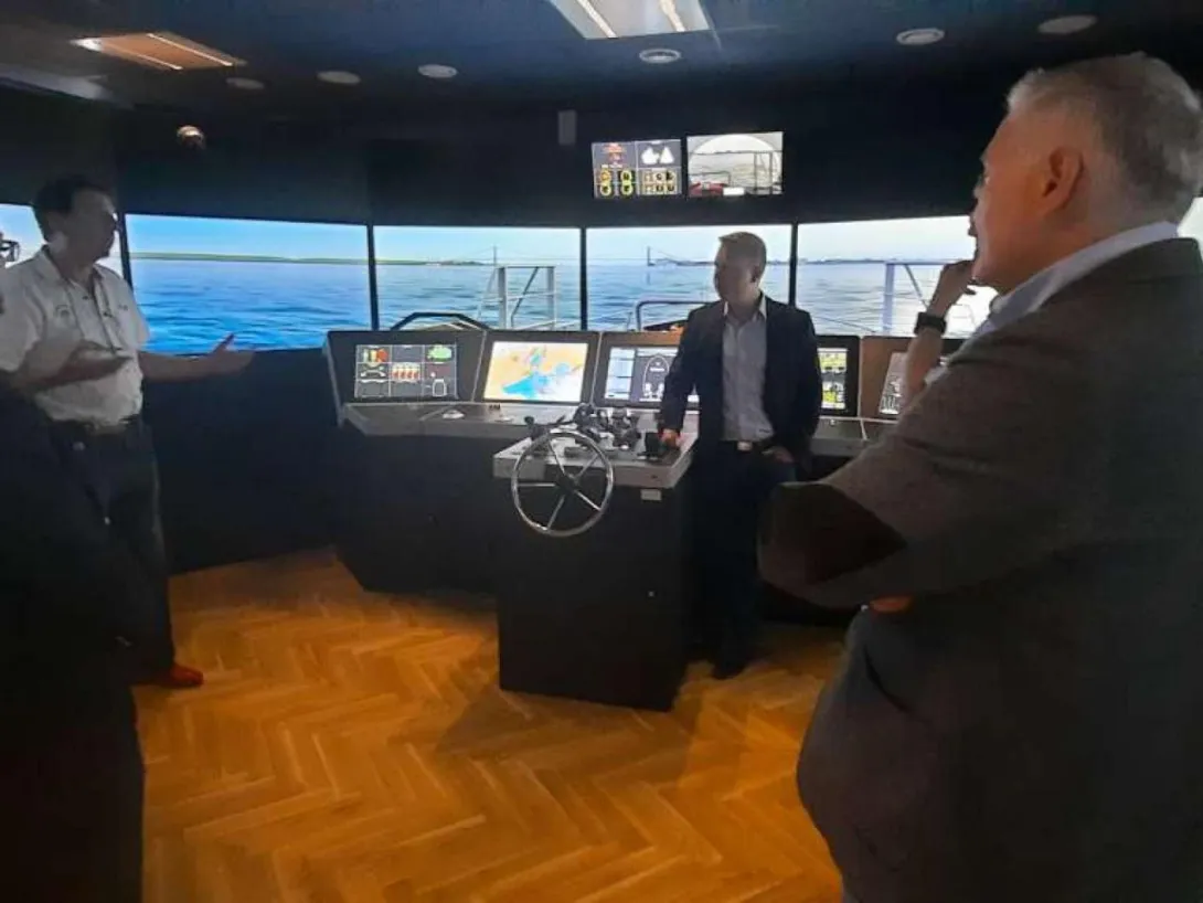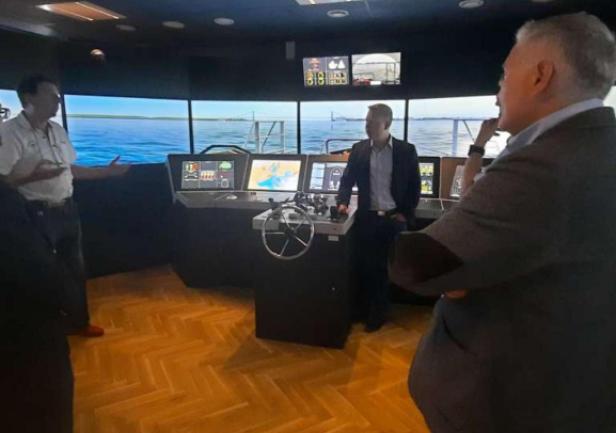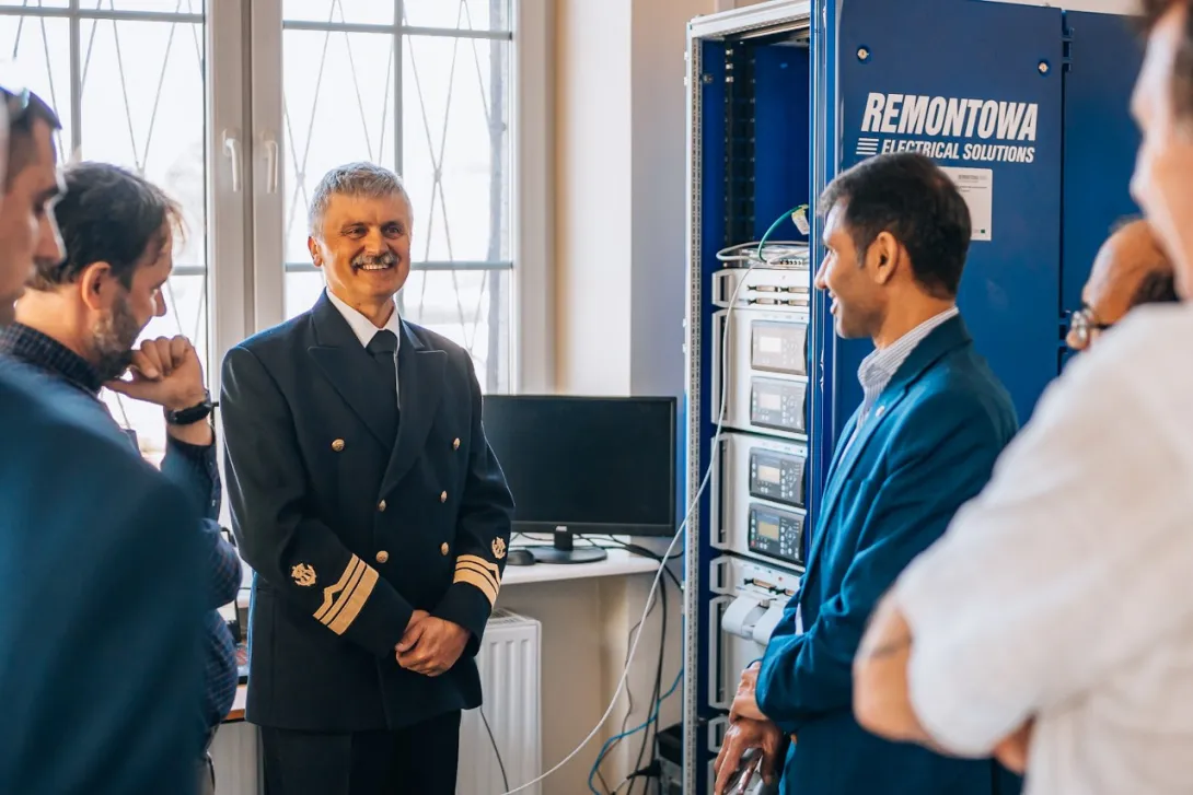 W ramach spotkania zaprezentowano laboratoryjne stanowisko z wirtualnym modelem systemu elektroenergetycznego statku zbudowane z wykorzystaniem technologii Hardware in the loop (HIL) w środowisku Typhoon Hil. Stanowisko zostało wykonane przez pracowników UMG, w kooperacji ze stocznią Remontowa Electrical Solutions w ramach projektu NCBiR nr POIR 01.02.00-00-005/1800 pt. „Zintegrowany system modelowania oraz graficznego projektowania instalacji elektrycznych na statkach”. Gościom przedstawiono wypracowane przez UMG (w kooperacji z RES) rozwiązanie i zademonstrowano pracę wirtualnego modelu okrętowego systemu elektroenergetycznego statku współpracującego z rzeczywistymi urządzeniami PMS (Power Management System) firmy Deif, powszechnie stosowanymi w technice okrętowej.