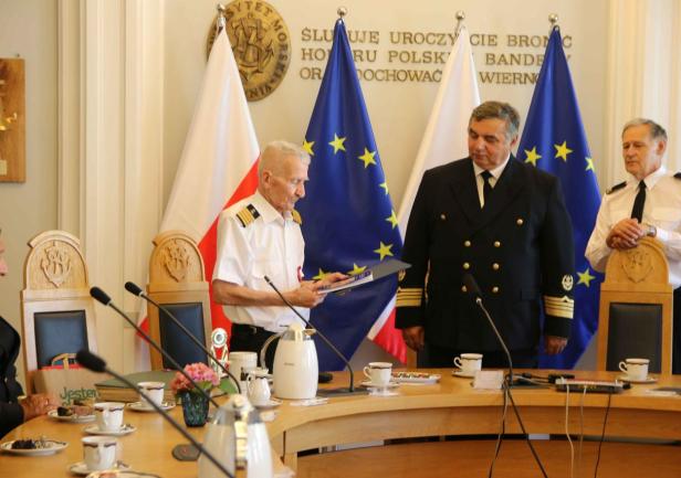 W uroczystości udział wzięli Pan Prorektor ds. Kształcenia dr hab. Sambor Guze, prof. UMG, Pan Prorektor ds. Nauki dr hab. Dariusz Barbucha, prof. UMG, Pan Tomasz Augustyniak Wiceprezydent Miasta Gdyni, Pan Szymon Kulas p.o. Dyrektora Narodowego Muzeum Morskiego, Pan Dyrektor Działu Armatorskiego i Praktyk Morskich mgr kpt. ż.w. Dariusz Jellonnek, Przewodniczący Stowarzyszenia Kapitanów Żeglugi Wielkiej oraz Prezes Prezydium Zarządu Głównego Ligii Morskiej i Rzecznej Pan dr inż. kpt. ż.w. Andrzej Królikowski, a także uczestnicy pamiętnego rejsu - Pan dr hab. inż. kpt. ż.w. Henryk Śniegocki, prof. UMG oraz komendant „Daru Młodzieży” Pan kpt. ż.w. Mirosław Peszkowski.