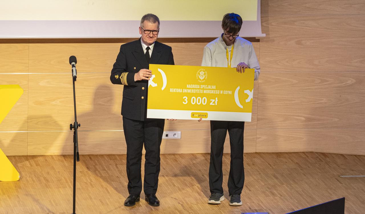 Symboliczny czek wręczył zwycięzcy Prorektor ds. Nauki dr. hab. Dariusz Barbucha, prof. UMG.