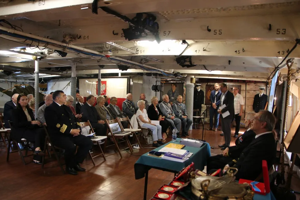 Uroczystość zakończył symboliczny akt przekazania przez prof. dr. kpt. ż.w. Daniela Dudę pamiątkowego bulaju z pierwszego rejsu „Daru Młodzieży” do zbiorów Narodowego Muzeum Morskiego w Gdańsku.