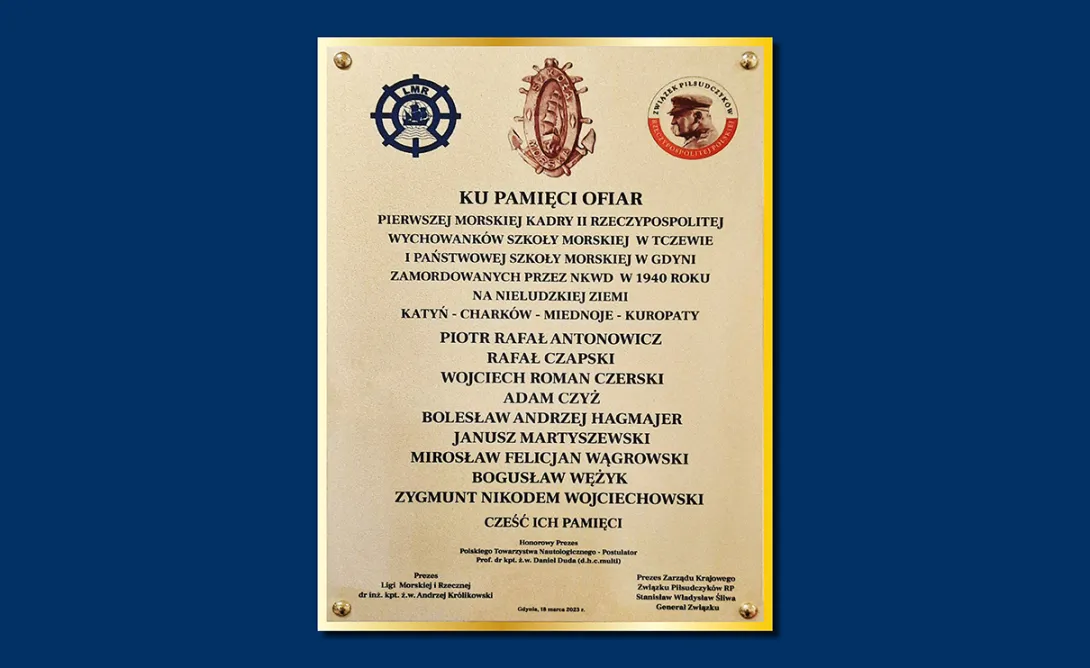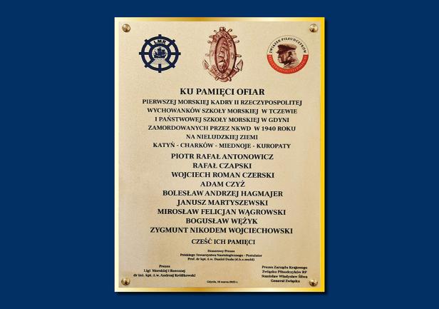 Druga z tablic upamiętnia wychowanków szkoły Morskiej w Tczewie i Państwowej Szkoły Morskiej w Gdyni – pierwszej morskiej kadry II Rzeczpospolitej, tragicznie zamordowanej przez NKWD w 1940 roku w Katyniu, Miednoje, Charkowie oraz Kuropatach. Tablica ta upamiętnia: Piotra Rafała Antonowicza, Rafała Czapskiego, Wojciecha Romana Czerskiego, Adama Czyża, Bolesława Andrzeja Hagmajera, Janusza Martyszewskiego, Mirosława Felicjana Wągrowskiego, Bogusława Wężyka i Zygmunta Nikodema Wojciechowskiego.