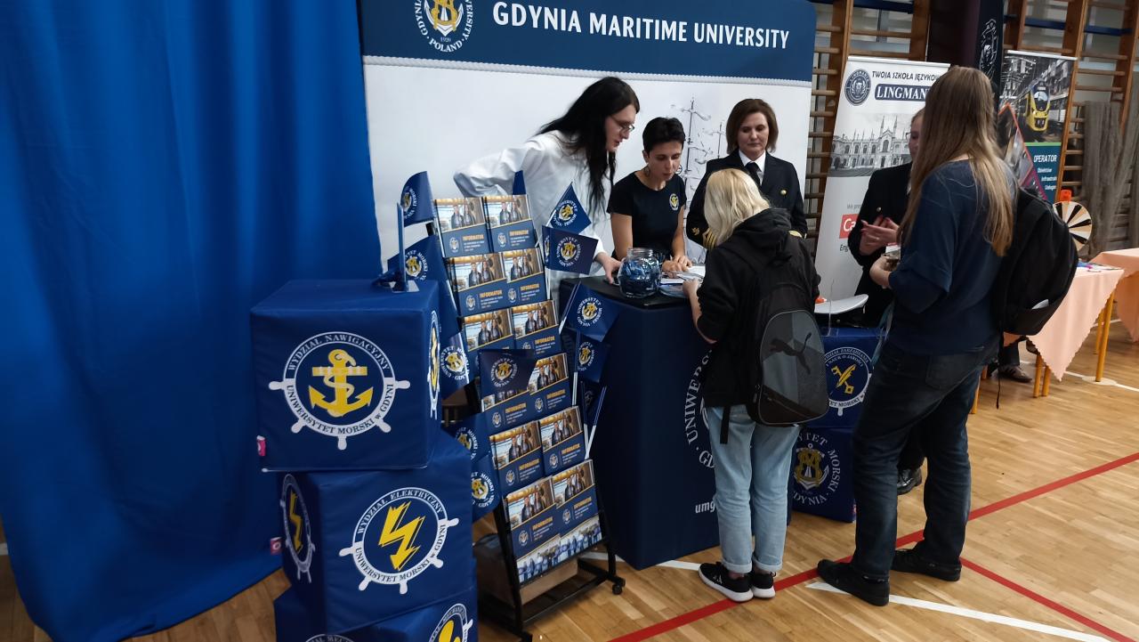 Prezentacje z ramienia Uniwersytetu Morskiego w Gdyni przeprowadziła Pani dr inż. Anita Kukułowicz z Katedry Zarządzania Jakością Wydziału Zarządzania i Nauk o Jakości. Ponadto na uczelnianym stanowisku nasi studenci i pracownicy opowiadali o ofercie kształcenia, zasadach i terminach rekrutacji.