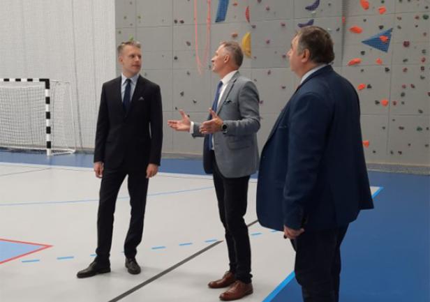W czasie spotkania JM Rektor prof. dr hab. inż. kpt. ż.w. Adam Weintrit przedstawił Ministrowi bieżące sprawy Uczelni oraz omówił możliwość realizacji II etapu budowy kompleksu sportowo-akademickiego. Następnie JM Rektor wraz z Kanclerzem UMG mgr. Filipem Malatą oraz Dyrektorem Centrum Sportu i Rekreacji UMG dr. Andrzejem Lachowiczem zaprosił Ministra do zwiedzenia nowo otwartego obiektu. W czasie prezentowania poszczególnych pomieszczeń obiektu, Kanclerz UMG przedstawił Ministrowi plany realizacji II etapu budowy kompleksu sportowo-akademickiego.