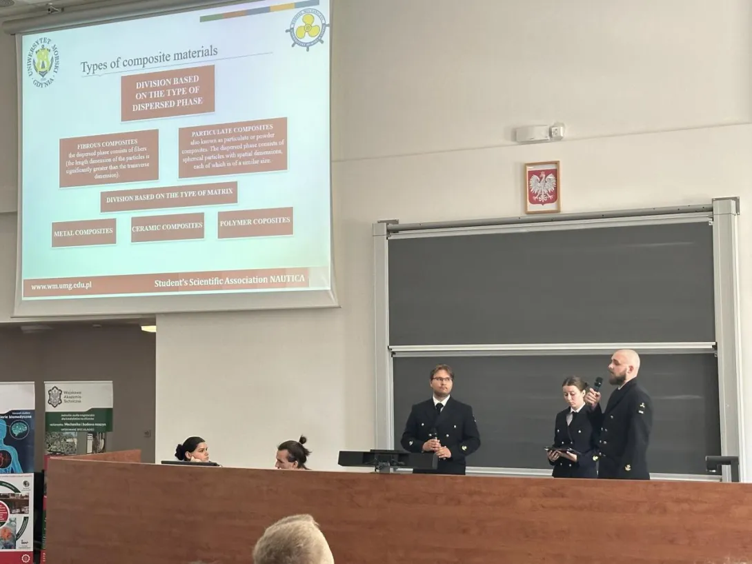 1. "The application of polymer composites in marine engineering" autorstwa Julii Jaskólskiej, Macieja Słowińskiego i Oskara Pasieki.