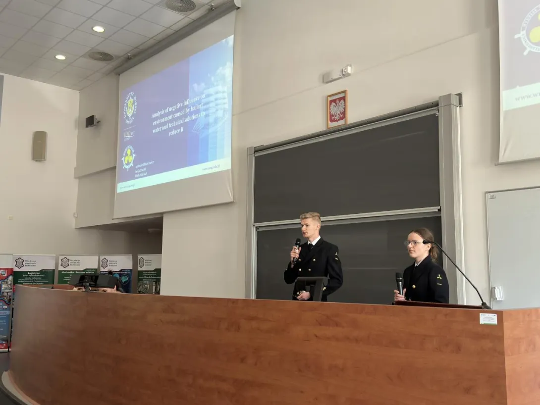 2. "Analysis of negative influence on environment caused by ballast water and technical solutions to reduce it" autorstwa Mai Smolak, Michała Nowaka, Mateusza Błaszkiewicza, za który studenci otrzymali wyróżnienie "za walory poznawcze".