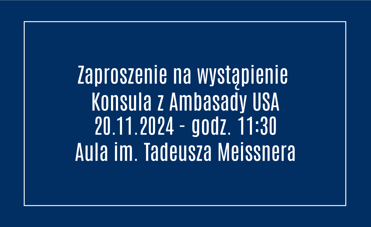 zapraszamy na wyjątkowe spotkanie z przedstawicielem Ambasady Stanów Zjednoczonych, które odbędzie się w środę, 20 listopada 2024 roku o godzinie 11:30 w Auli im. Tadeusza Meissnera.