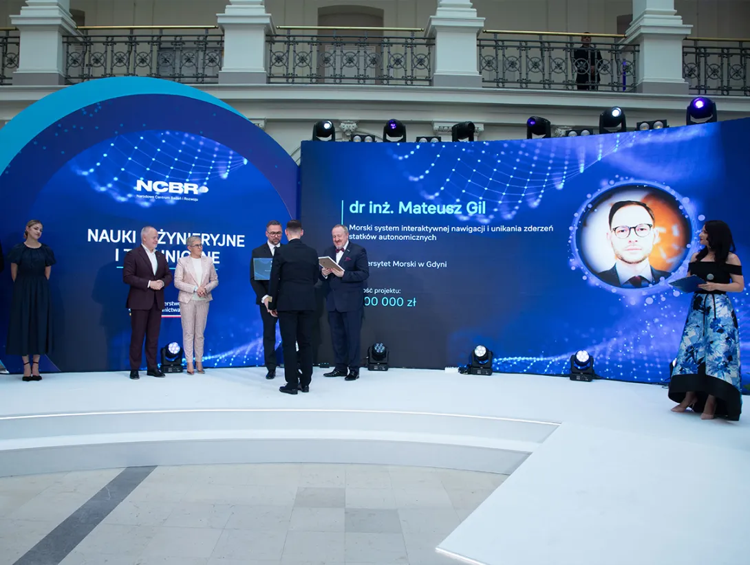 Na uroczystej, jubileuszowej gali XV edycji programu LIDER, która odbyła się w Auli Politechniki Warszawskiej, dr inż. Mateusz Gil odebrał dyplom i symboliczny czek z rąk Ministra Nauki i Szkolnictwa Wyższego dr. inż. Marcina Kulaska, Wiceministra Nauki i Szkolnictwa Wyższego prof. Marka Gzika oraz Dyrektora Narodowego Centrum Badań i Rozwoju prof. Jerzego Małachowskiego na realizację wyjątkowego projektu pt. „Morski system interaktywnej nawigacji i unikania zderzeń statków autonomicznych” - MARINERS. Doceniony w Programie Lider projekt MARINERS, którego kierownikiem jest dr inż. Mateusz Gil, dotyczy stworzenia nawigacyjnego, rozproszonego systemu decyzyjnego, pozwalającego na efektywne unikanie zderzeń morskich statków autonomicznych.