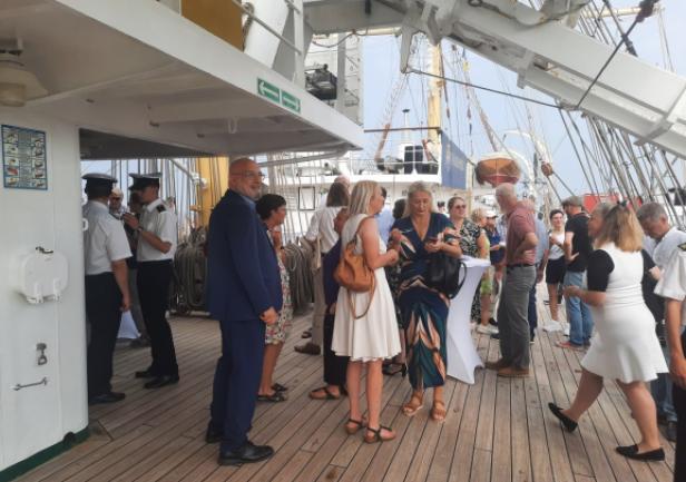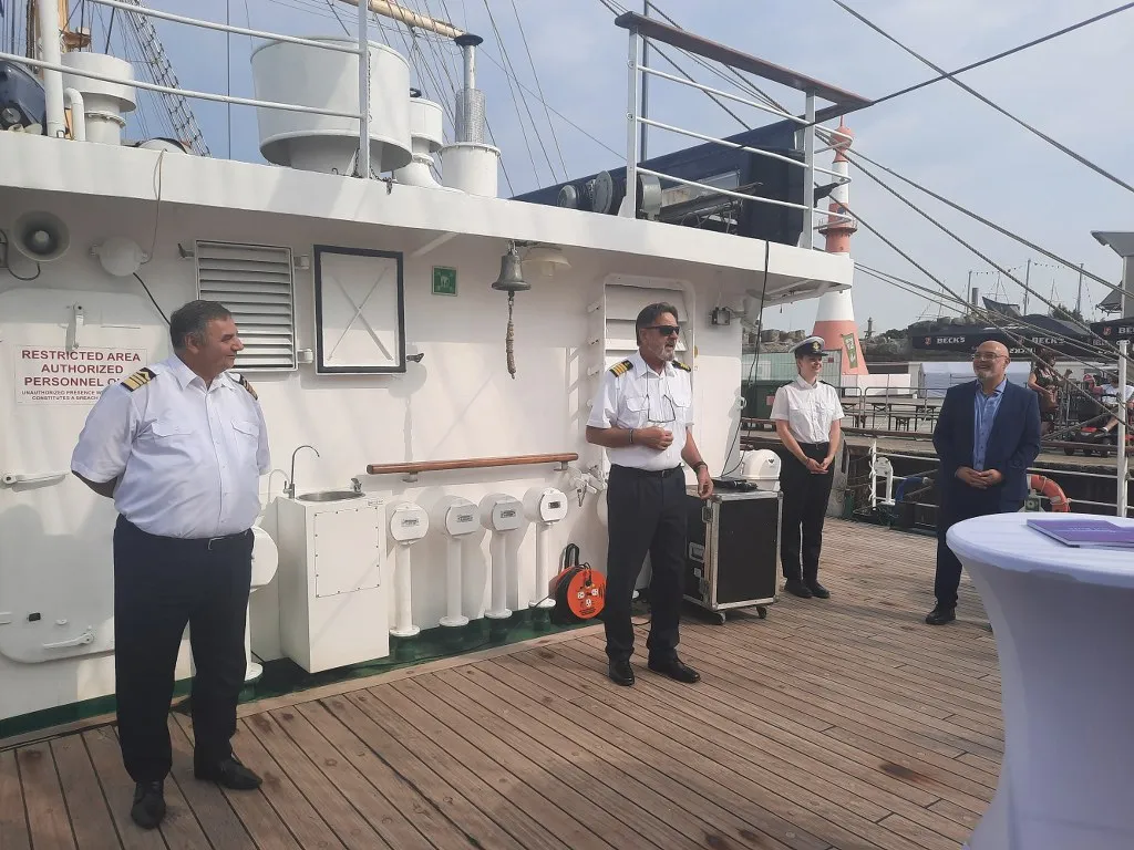 14 sierpnia w ramach wydarzenia miało miejsce oficjalne spotkanie przedstawicieli obydwu uczelni na pokładzie „Daru Młodzieży”. Uczestników tej części obchodów powitał JM Rektor prof. Adam Weintrit, który przypomniał, że Uniwersytet Morski w Gdyni nawiązał współpracę z uczelnią w Bremerhaven niemal 50 lat temu. Wskazał przy tym, że była to pierwsza tego rodzaju współpraca, jaką Uczelnia nawiązała z Uniwersytetem położonym w zachodniej części Europy. JM Rektor podkreślił, że współpraca między uczelniami ma wyjątkowe znaczenie dla Uniwersytetu Morskiego w Gdyni. Nadmienił przy tym, że żywi nadzieję, iż udział delegacji Uczelni w obchodach 50-lecia Hochschule Bremerhaven będzie sprzyjać nawiązaniu kolejnych relacji, a także umocnieniu dotychczasowej współpracy.