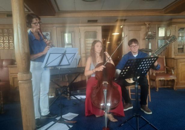 Tego dnia delegacja Uczelni miała również okazję wysłuchać specjalnie przygotowanego na tę okoliczność koncertu w wykonaniu tria Froebe-Schad. Muzycy wystąpili na „Darze Młodzieży” w saloniku kapitańskim, wykonując utwory szantowe, a także prezentując repertuar muzyki klasycznej. Organizatorem koncertu było Stowarzyszenie Przyjaciół „Daru Młodzieży” w Bremerhaven, którego przewodniczącym jest prof. Hans Rummel, doktor honoris causa Uniwersytetu Morskiego w Gdyni.