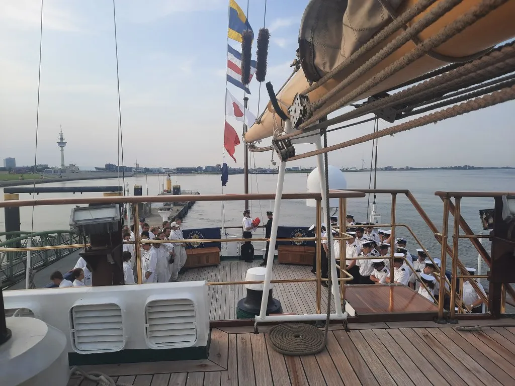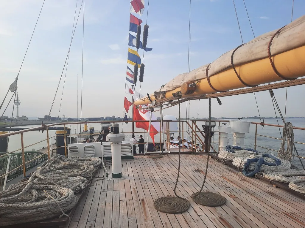 Obchody z udziałem delegacji Uczelni zaplanowano m.in. na pokładzie „Daru Młodzieży”, który 13 sierpnia br. wpłynął wraz z praktykantami Uniwersytetu Morskiego w Gdyni do portu w Bremerhaven. Statek szkolny powitała delegacja Uczelni wraz z JM Rektorem prof. dr. hab. inż. kpt. ż.w. Adamem Weintritem na czele, a także przedstawiciele Hochschule Bremerhaven reprezentowani przez Rektora prof. Alexisa Papathanassisa.