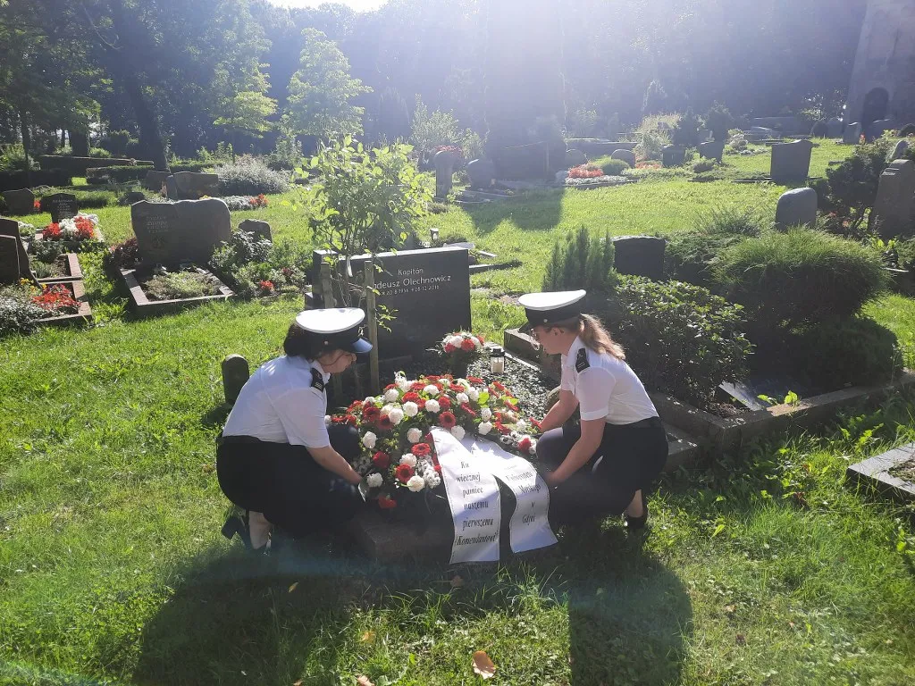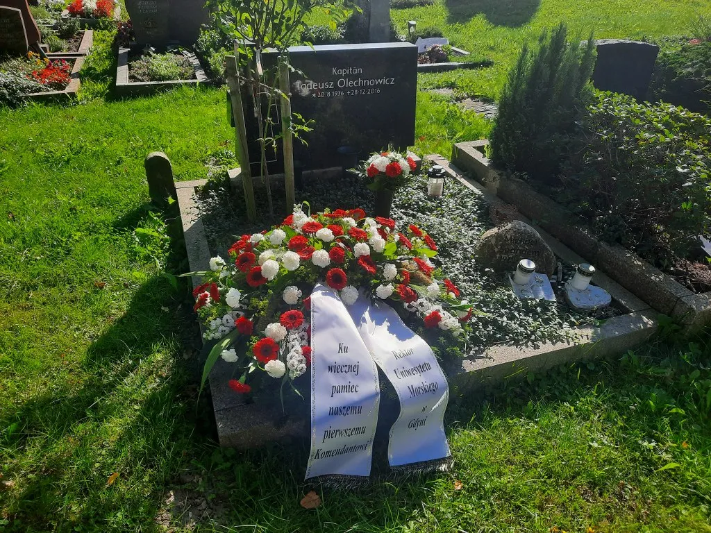 15 sierpnia studenci oraz delegacja Uczelni z JM Rektorem prof. dr. hab. inż. kpt. ż.w. Adamem Weintritem na czele, a także prof. Hans Rummel wraz z wdową po kpt. ż.w. Tadeuszu Olechnowiczu udali się na cmentarz w niemieckim Nordenham Blexen (Bremerhaven), gdzie spoczywa ostatni komendant „Daru Pomorza" i pierwszy „Daru Młodzieży", by oddać hołd zmarłemu. JM Rektor prof. Adam Weintrit złożył również pamiątkowy wpis w księdze kondolencyjnej znajdującej się w kościele St. Hippolyte, w którym w 2017 roku odbyły się uroczystości pogrzebowe.