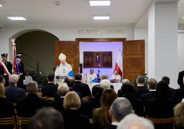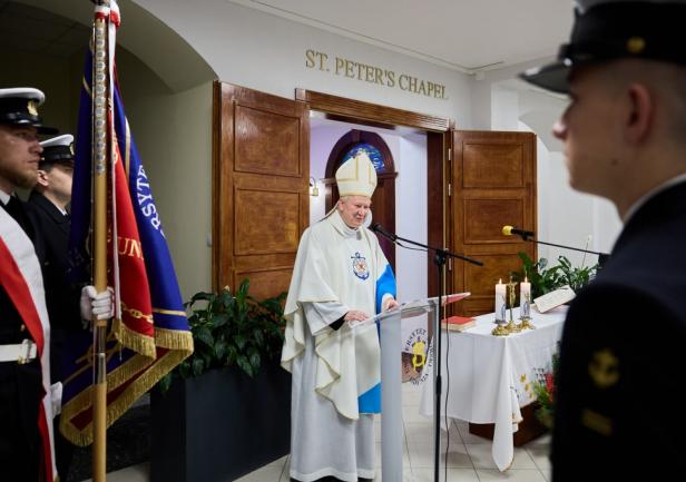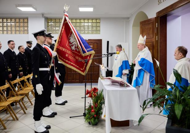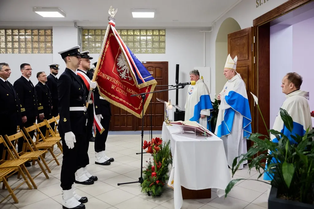 Uroczystą oprawę mszy świętej zapewnili Akademicki Chór Uniwersytetu Morskiego w Gdyni oraz Kompania Reprezentacyjna UMG.