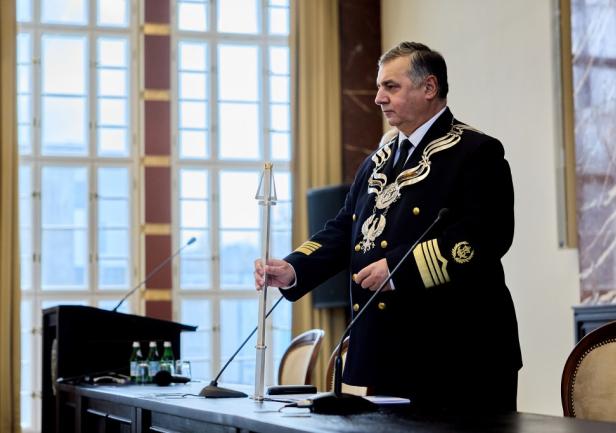 Uroczyste posiedzenie Senatu Uniwersytetu Morskiego w Gdyni rozpoczęło się od tradycyjnego wybicia szklanek punktualnie o godzinie 11:00. W posiedzeniu udział wzięli członkowie Senatu, przedstawiciele Rady Uczelni, pracownicy, studenci, absolwenci i zaproszeni goście.