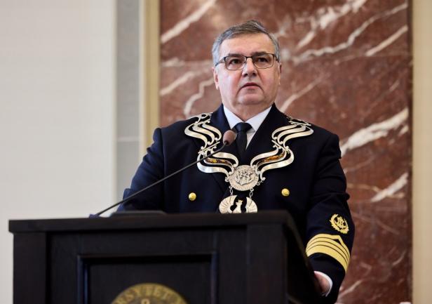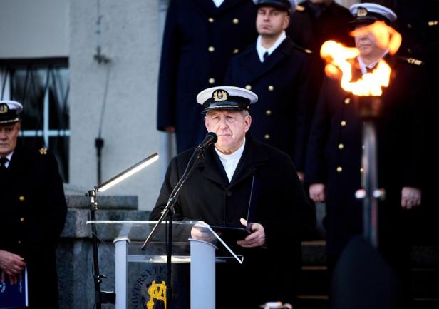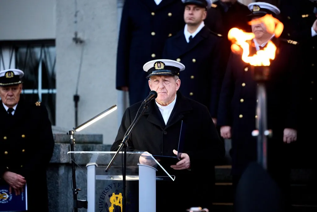 JM Rektor Uniwersytetu Morskiego w Gdyni prof. dr hab. inż. kpt. ż.w. Adam Weintrit, po powitaniu wszystkich uczestników wydarzenia wygłosił okolicznościowe przemówienie. JM Rektor podsumował najważniejsze wydarzenia mijającego roku, wskazał, że był to rok przełomowy dla Uczelni, w czasie którego przyznane zostały środki finansowe na budowę następcy „Daru Młodzieży”: