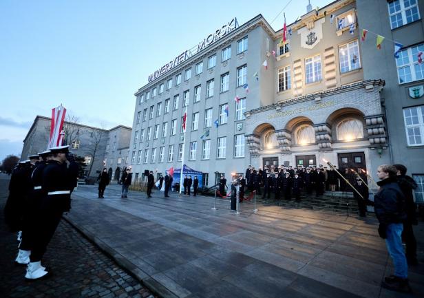 Najstarsza tradycja naszej Uczelni sięga 105 lat wstecz, do czasów Szkoły Morskiej w Tczewie. Wówczas młodzi adepci, nierzadko uczestnicy wojny polsko-bolszewickiej, aby zainaugurować działalność szkoły, wznieśli na jej budynku polską banderę – symbol marynarskiej tożsamości. Banderę podniesiono na budynku, gdyż placówka nie dysponowała jeszcze własnym statkiem.